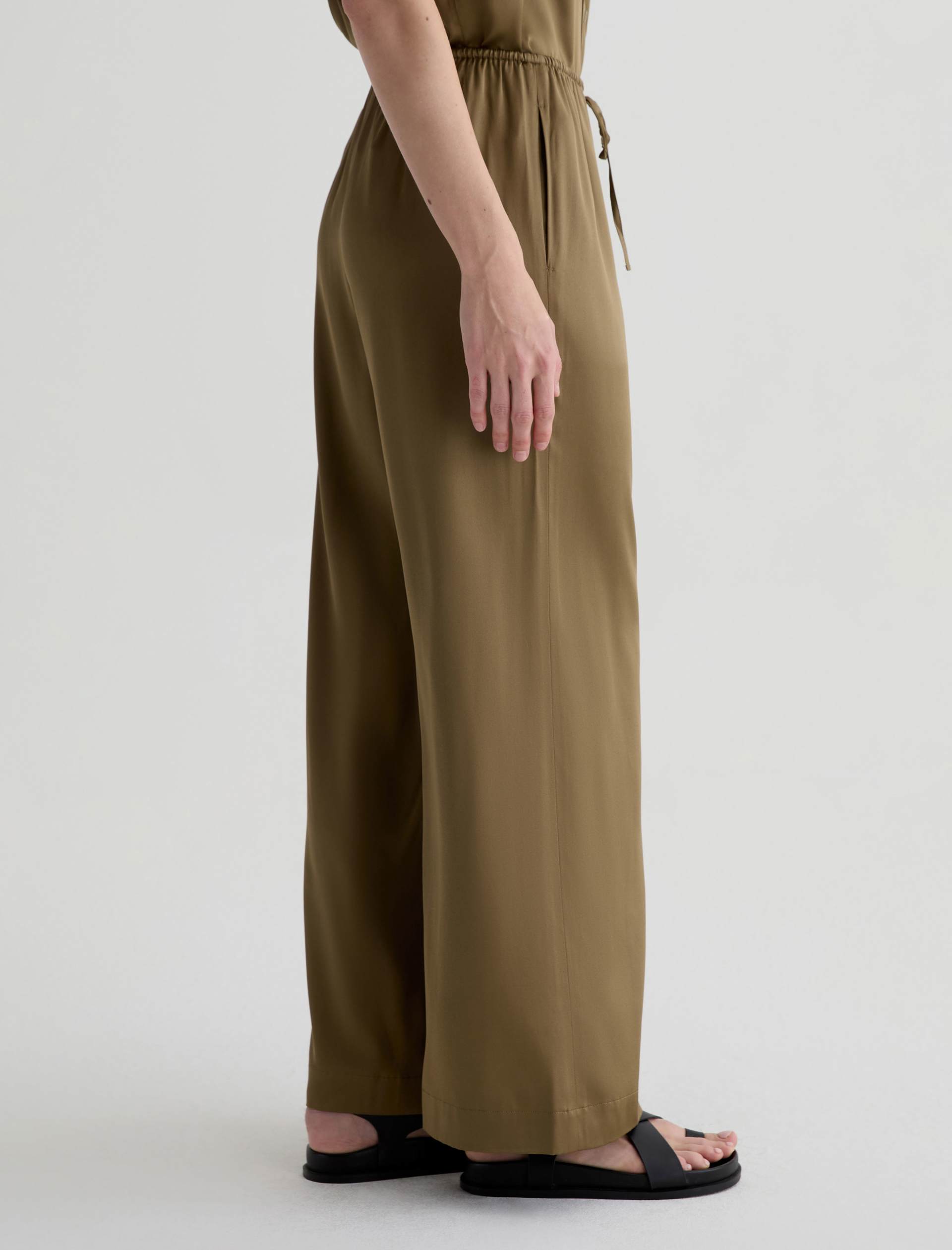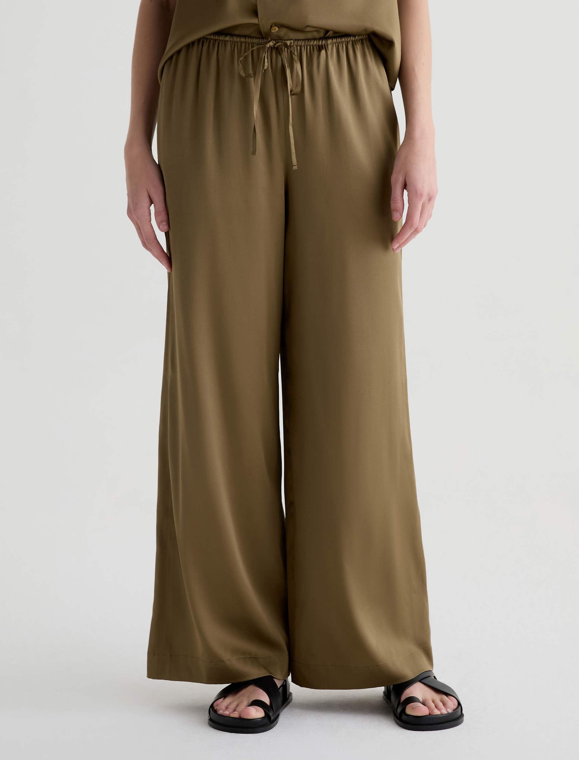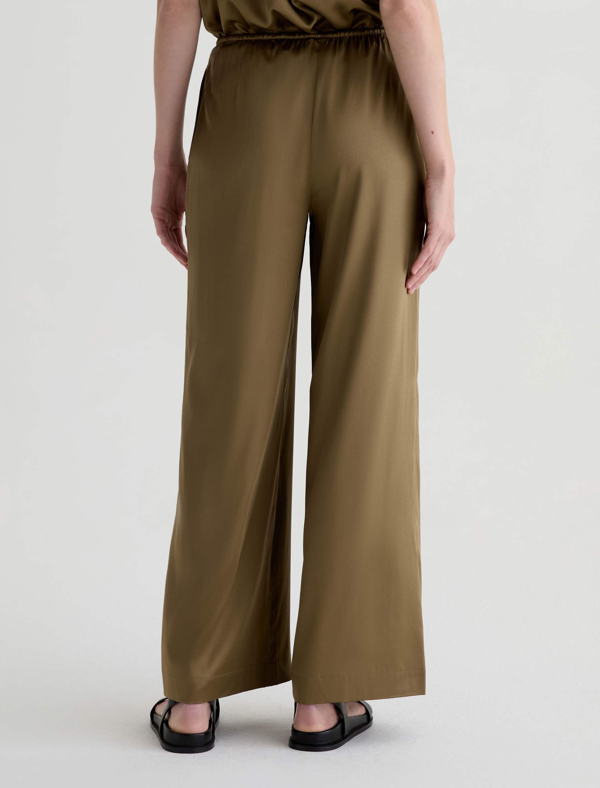 The Clara Pant is a pull-on, wide-leg silhouette made from a luxurious silk twill blend with 2% elastane for added comfort and ease of movement. The fabric offers a smooth, elevated finish that’s suitable for both everyday wear and dressier occasions. Designed with a wide-leg cut, this Mossy Taupe pant provides a breez