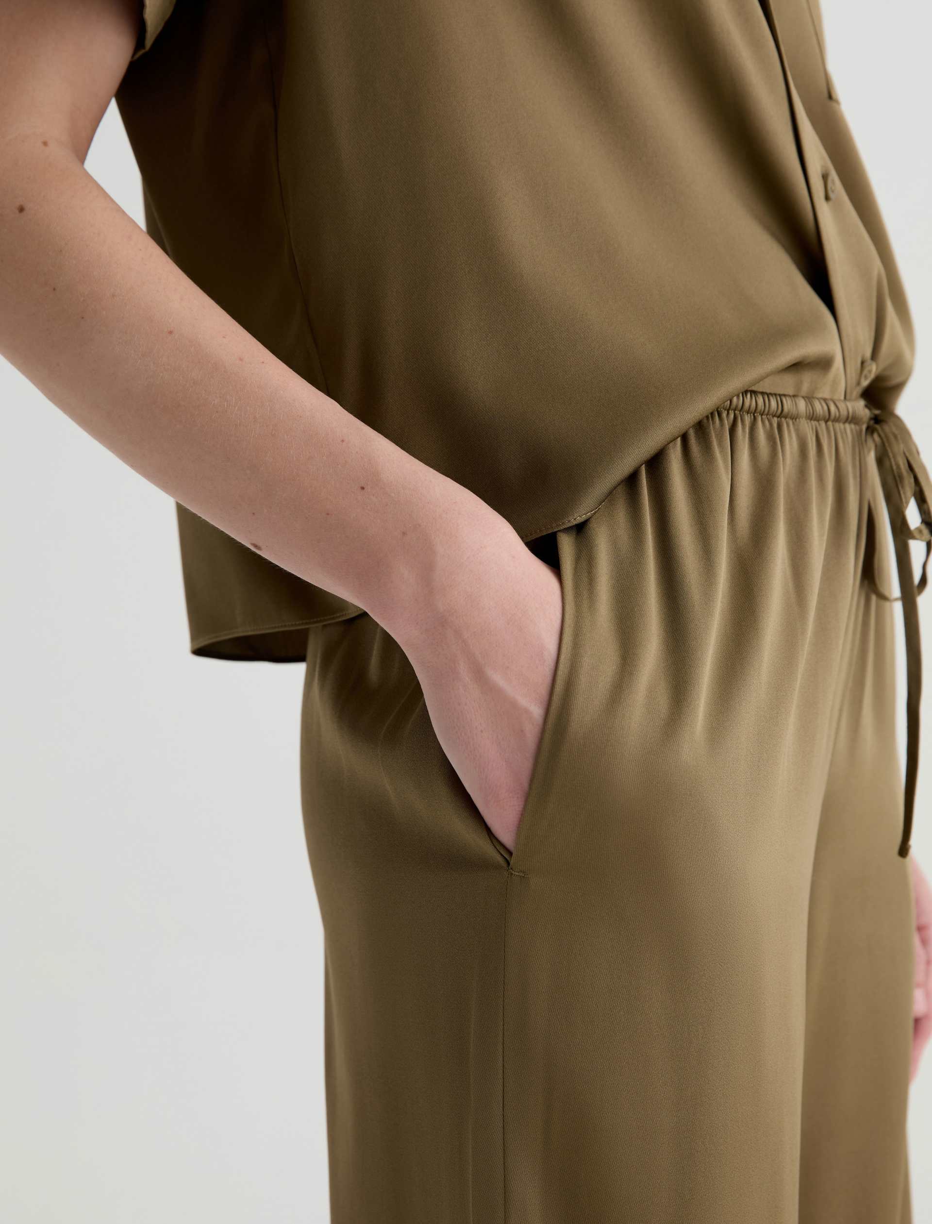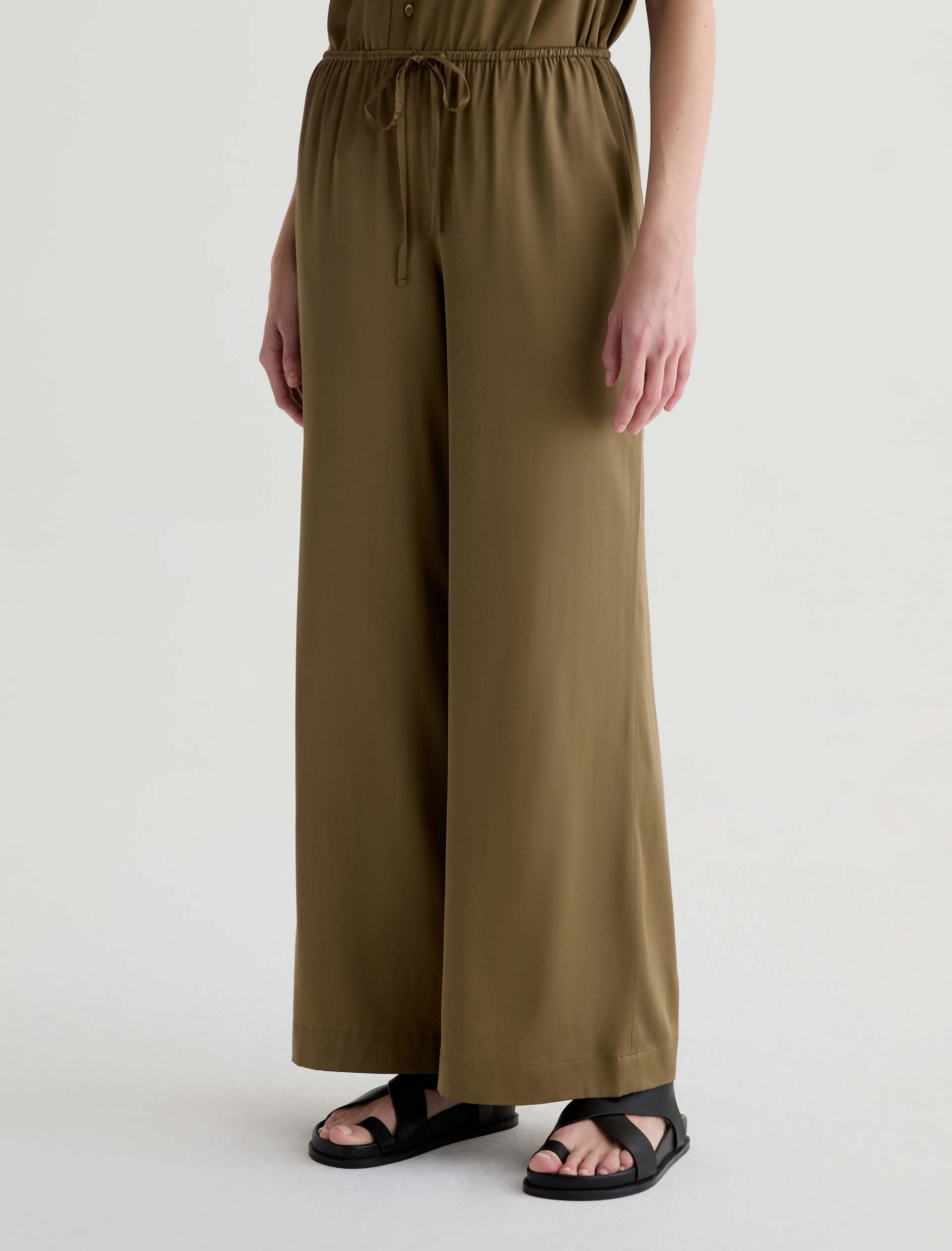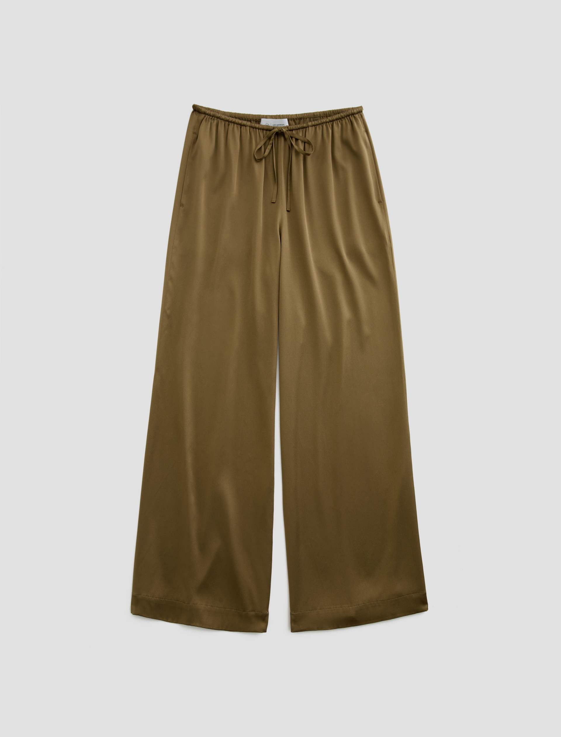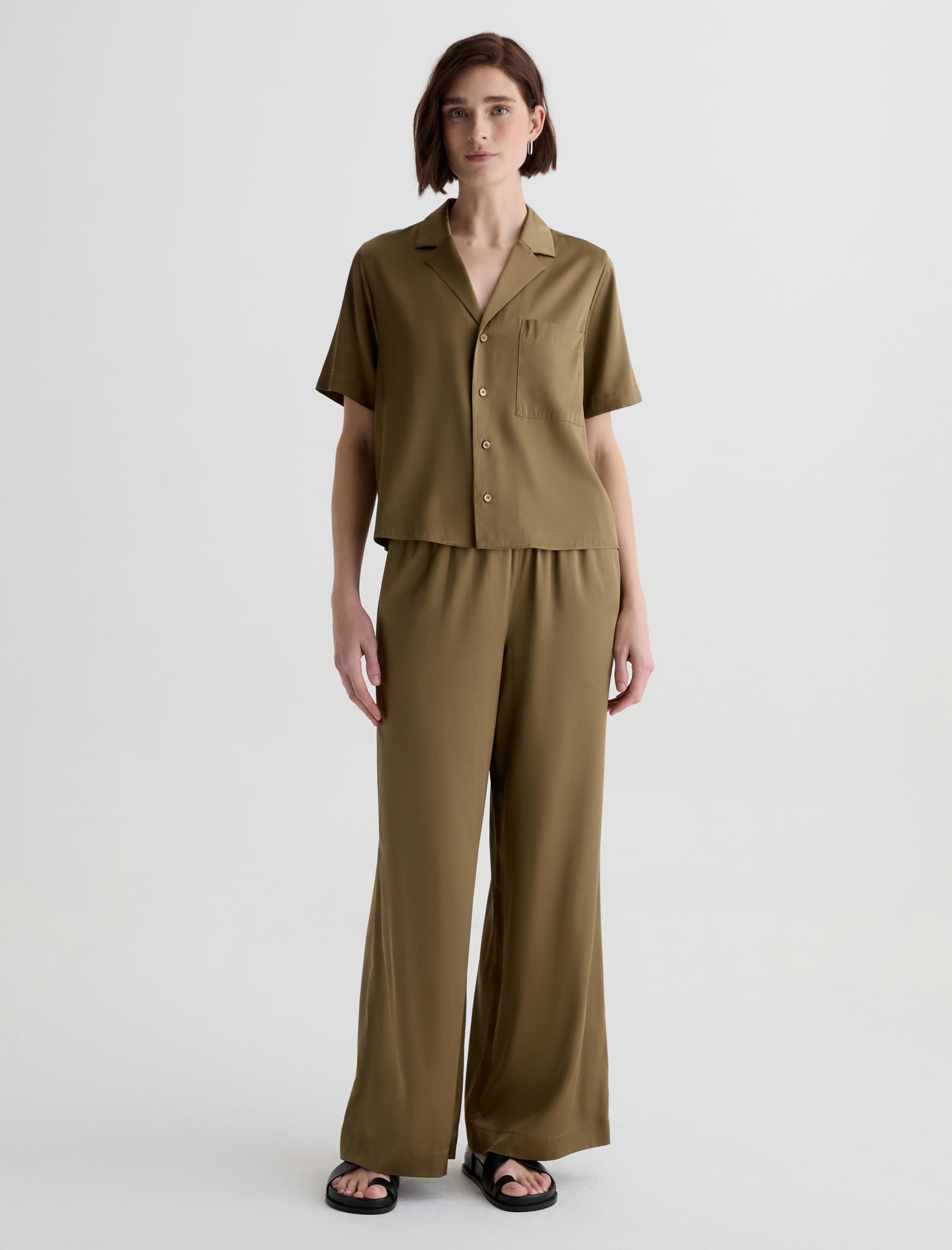 The Clara Pant is a pull-on, wide-leg silhouette made from a luxurious silk twill blend with 2% elastane for added comfort and ease of movement. The fabric offers a smooth, elevated finish that’s suitable for both everyday wear and dressier occasions. Designed with a wide-leg cut, this Mossy Taupe pant provides a breez