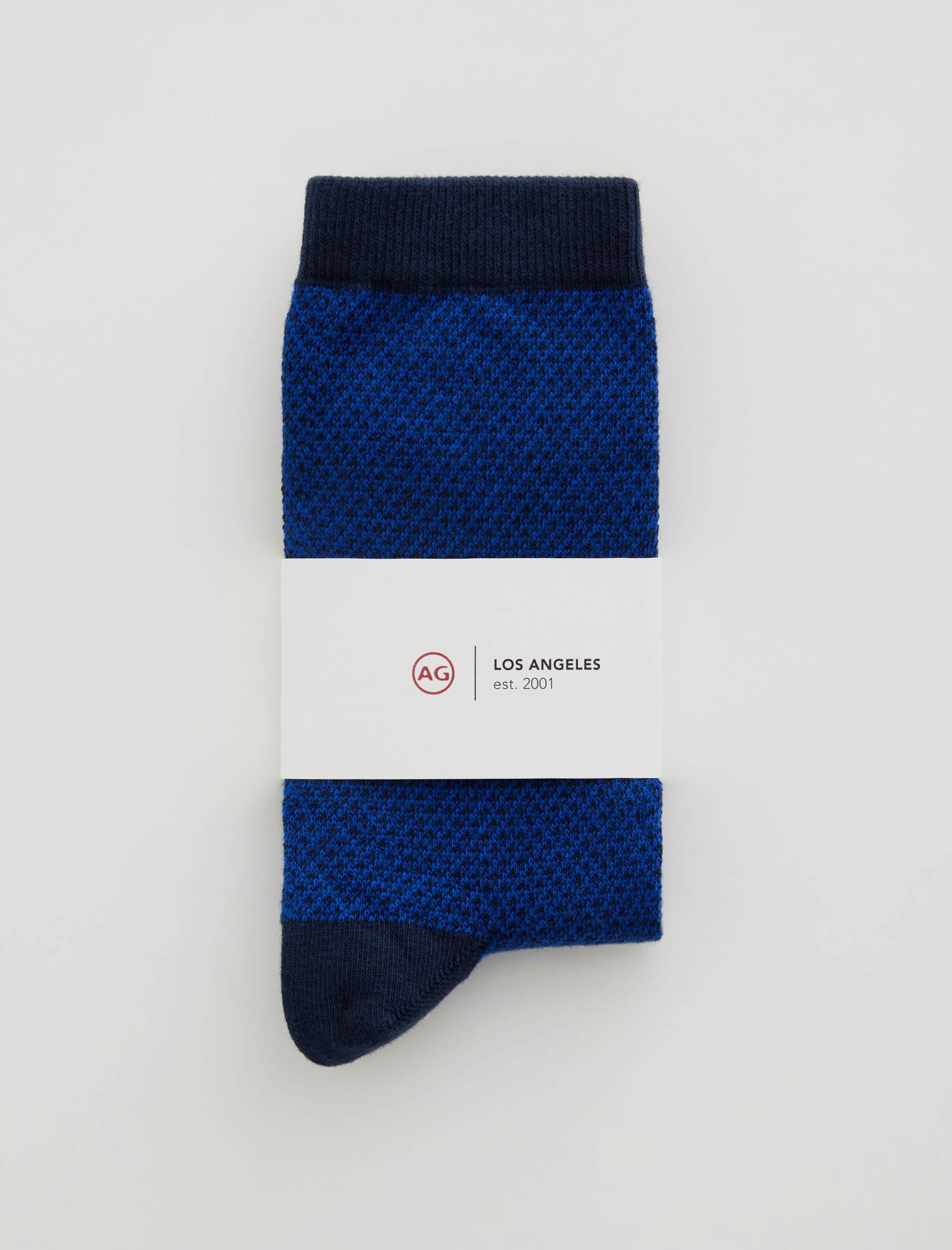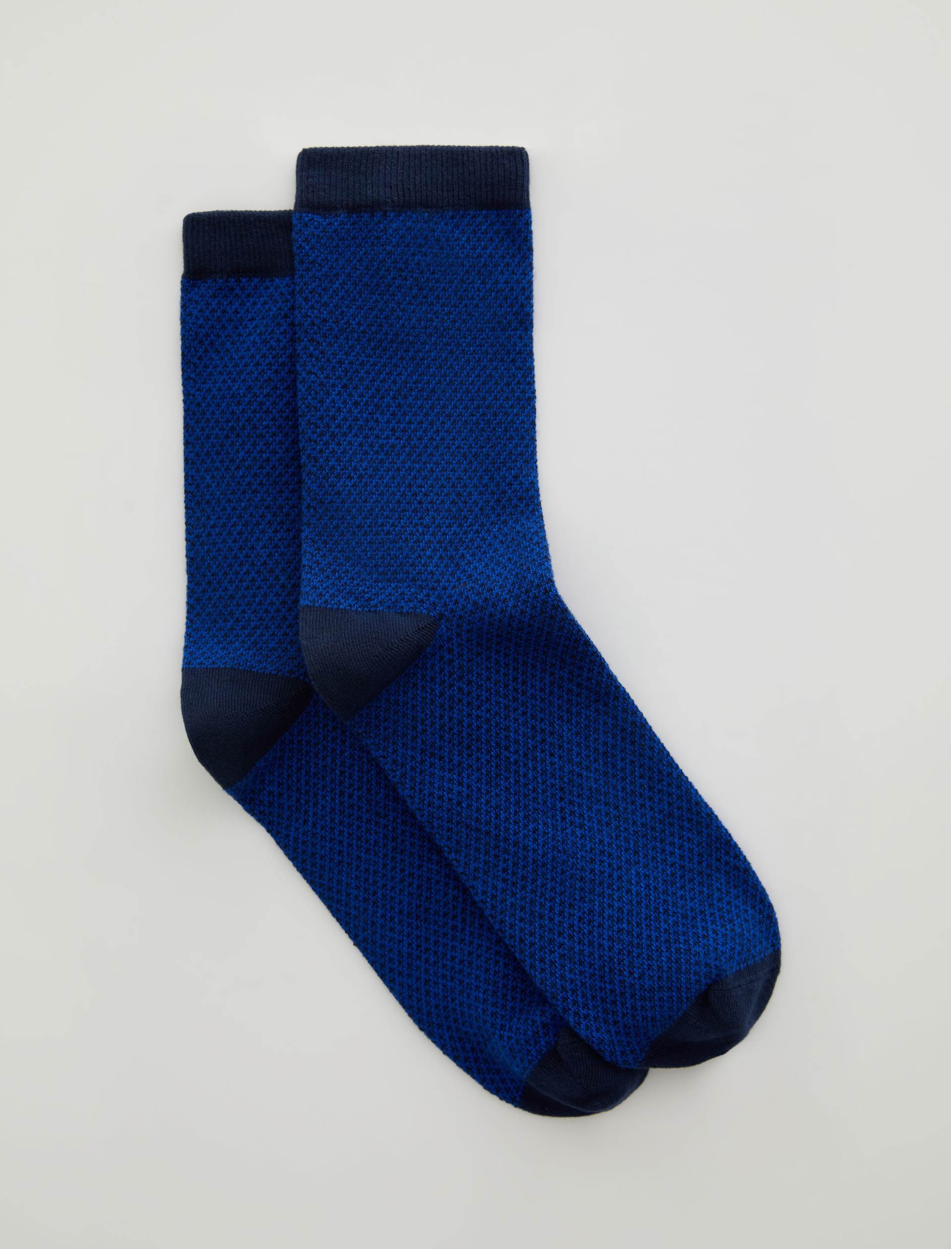 This sock is our classic crew sock. Featuring a check pattern, this pair has been knitted from a comfortable cotton blend and ribbed through the ankles.