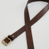 Made from smooth Italian leather, this braided men’s belt comes in a natural tan shade. It’s finished by a brass buckle with a rounded shape.