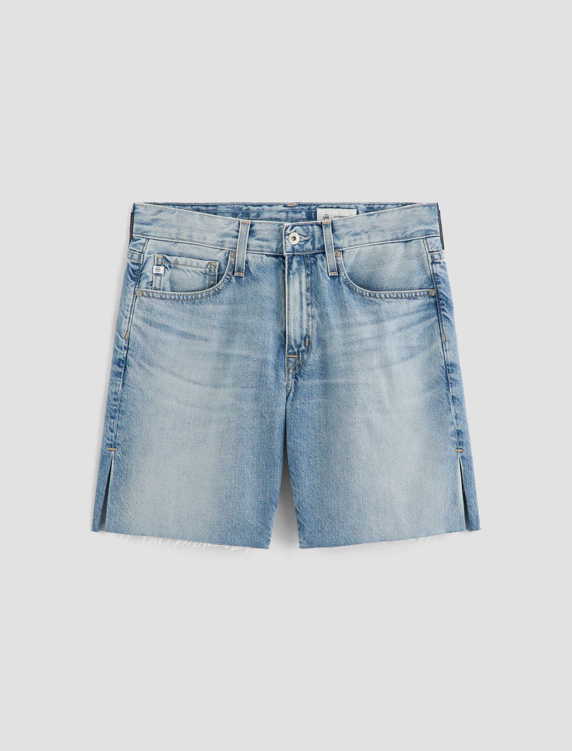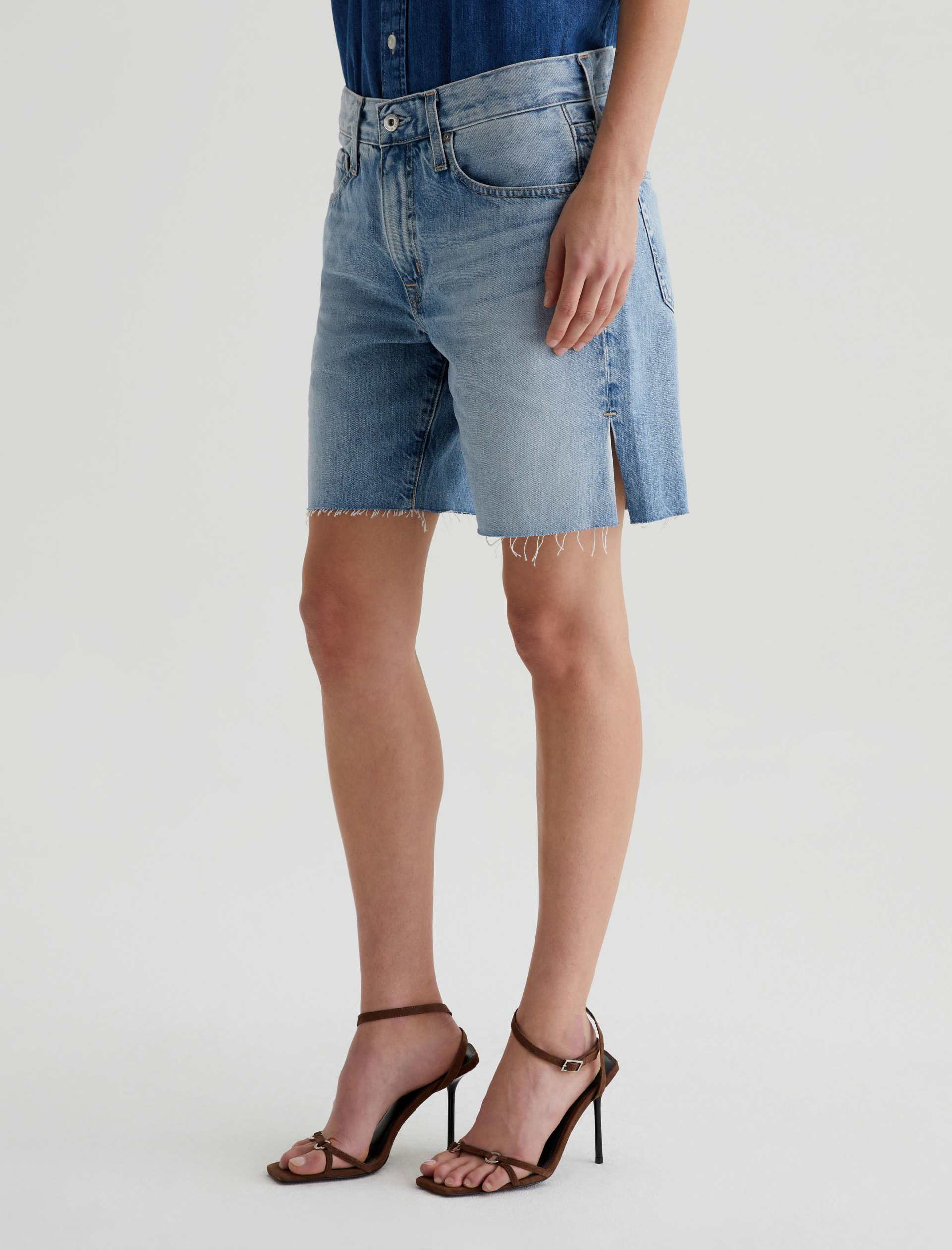 The Ex-Boyfriend Short is a mid-rise bermuda style with a slouchy fit, raw hems, and slit detailing at the sides. Designed in rigid 11.75 oz. Legion Denim from Japan, these five-pocket cutoff shorts come in a light wash that’s faded down for a naturally lived-in character.