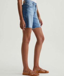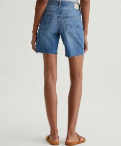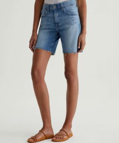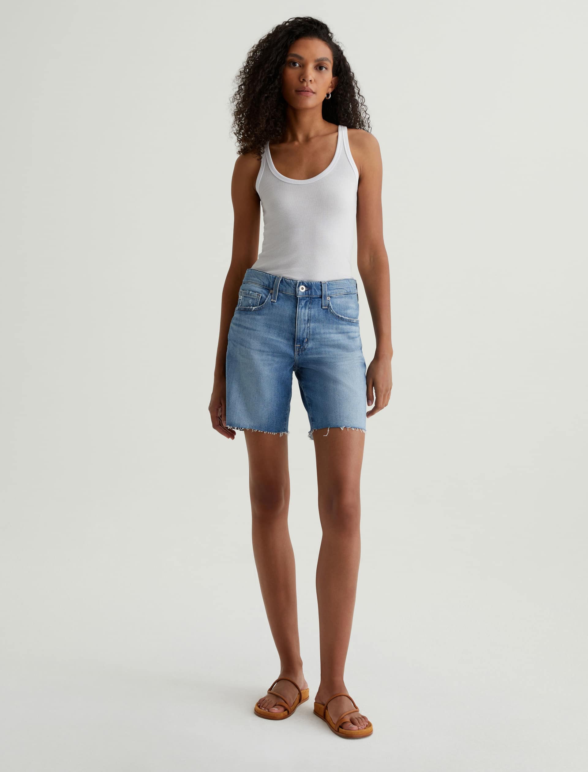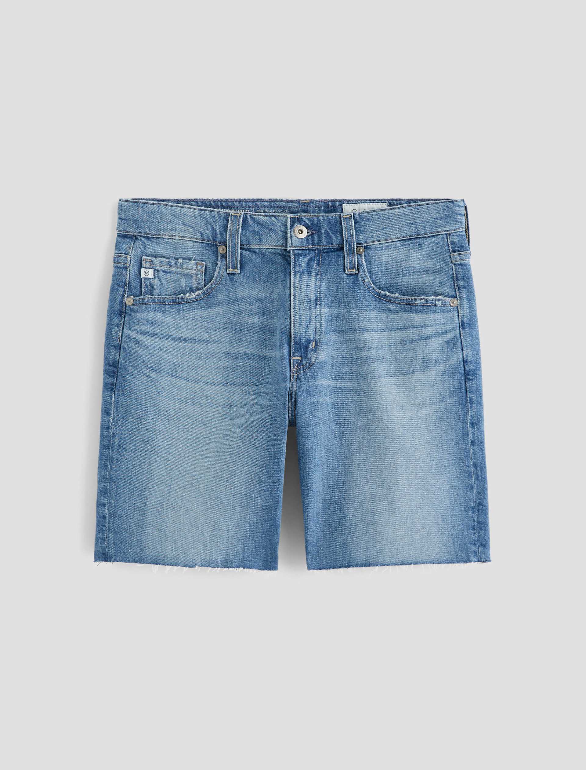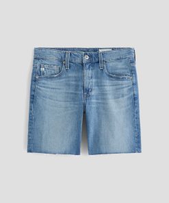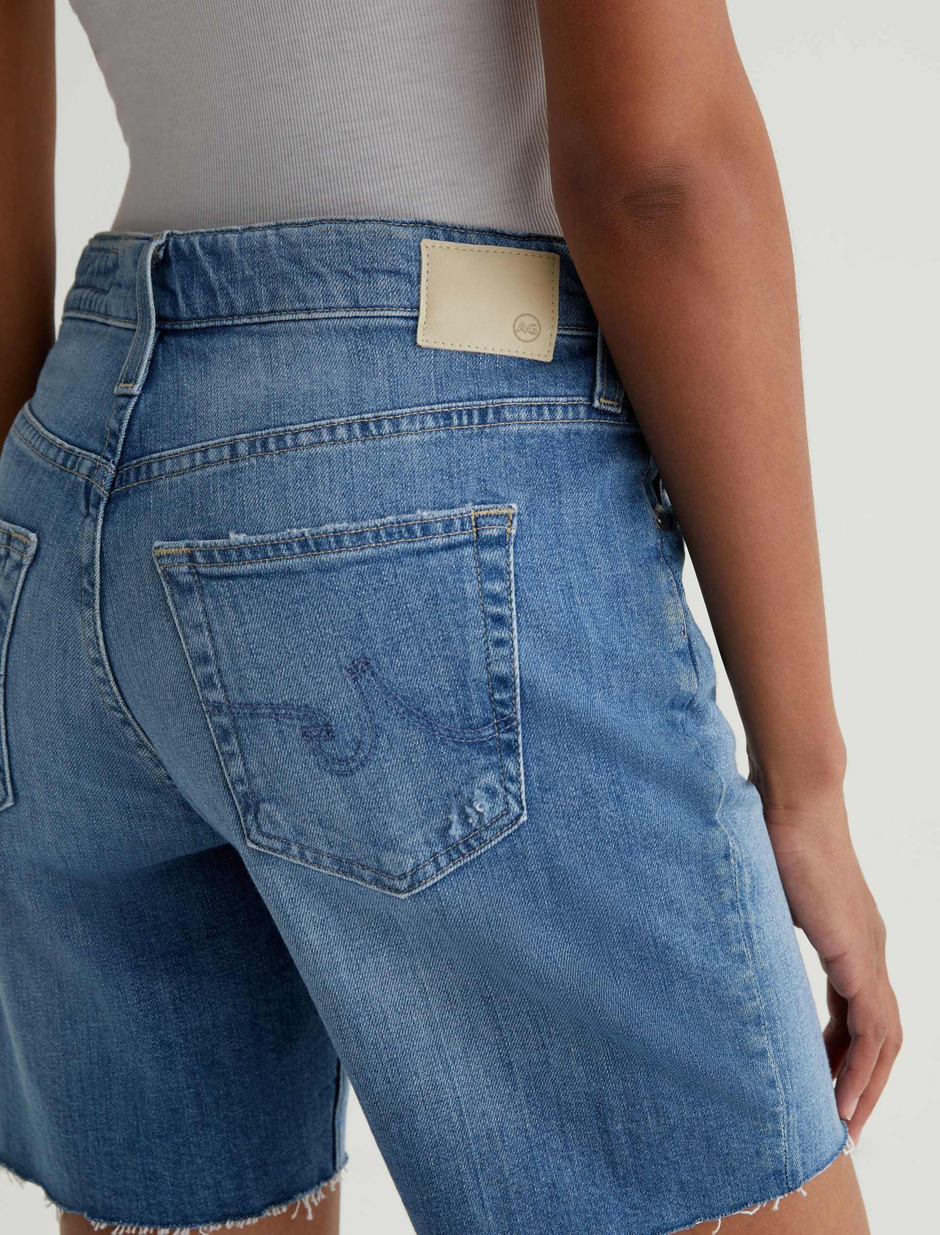 The Ex-Boyfriend Short is a mid-rise bermuda style with a slouchy fit and raw hems. Designed in 11.75 oz. Vintage Comfort Stretch Denim from Italy, these women’s cutoff shorts come in a faded medium wash with hints of distressing at the pockets.