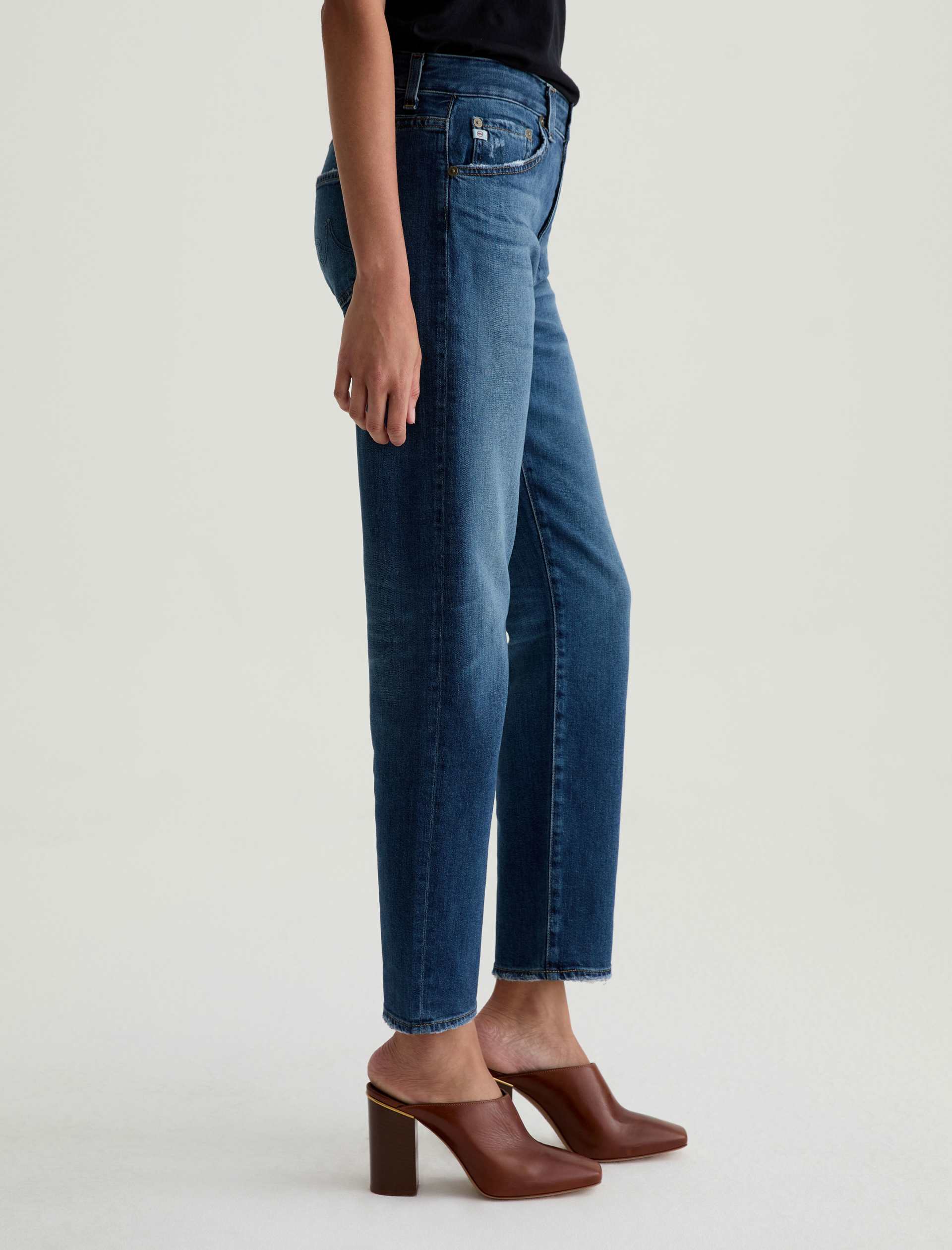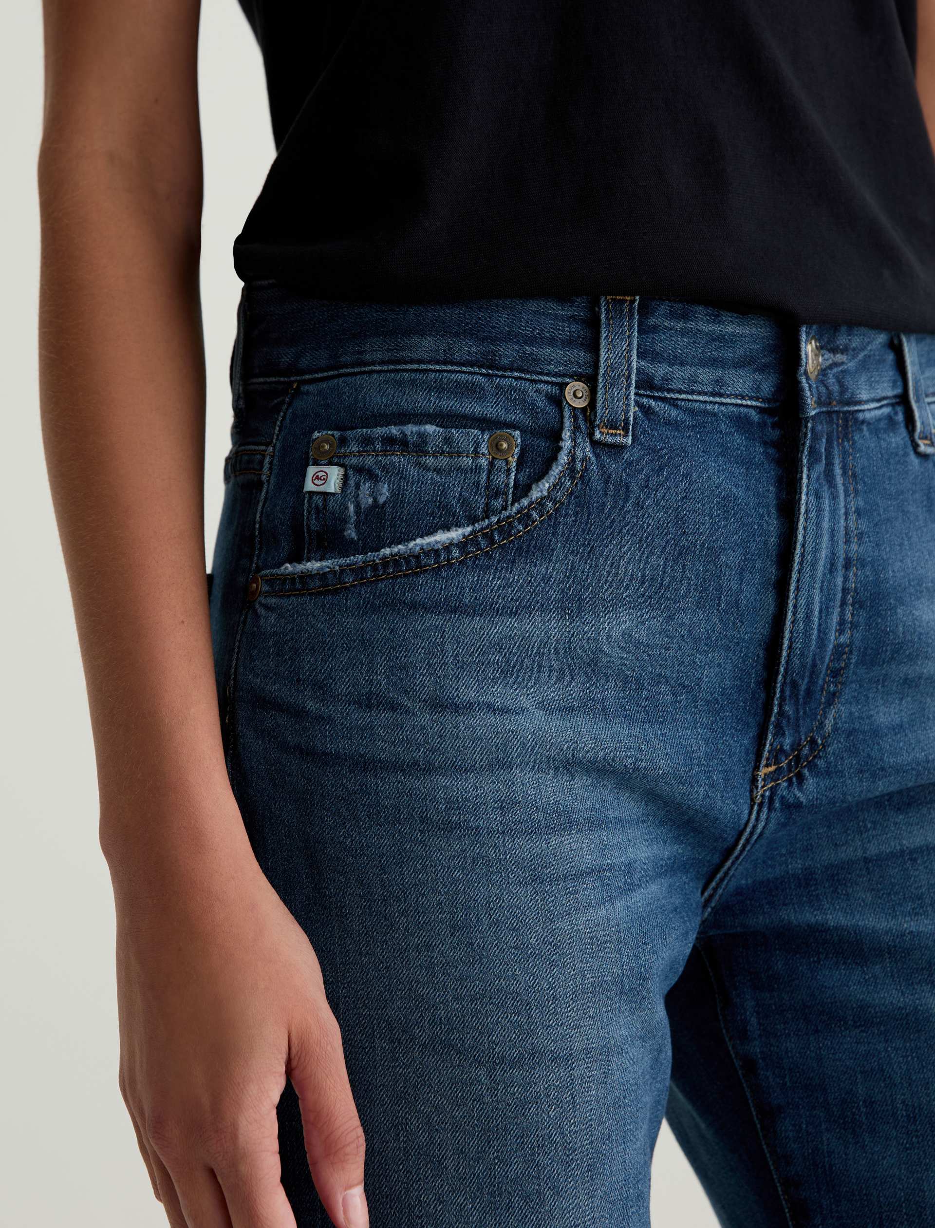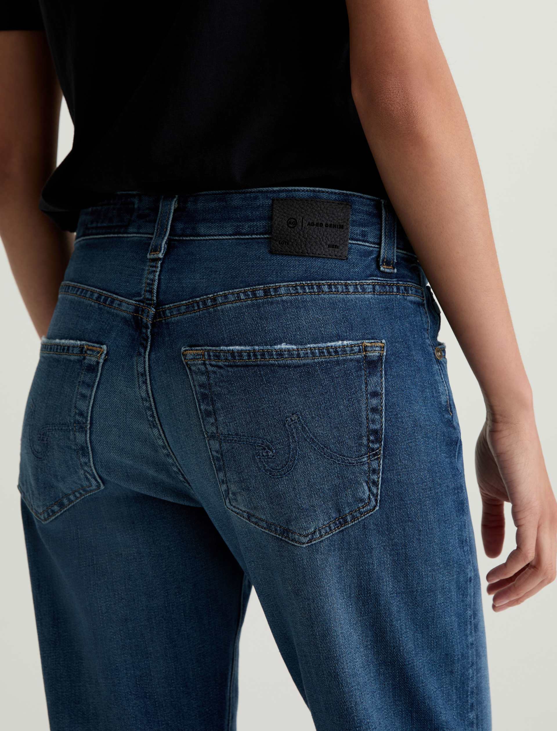 Our Ex-Boyfriend Slim jean for women features a slouchy-slim fit in an AG-ed™ medium-indigo wash. It’s got a broken-in fade, tattered back hems, and a bit of distressing at the pockets to emulate 10 years of wear. Crafted from 10 oz. Japanese comfort-stretch denim, these mid-rise jeans fit relaxed from hip to knee befo