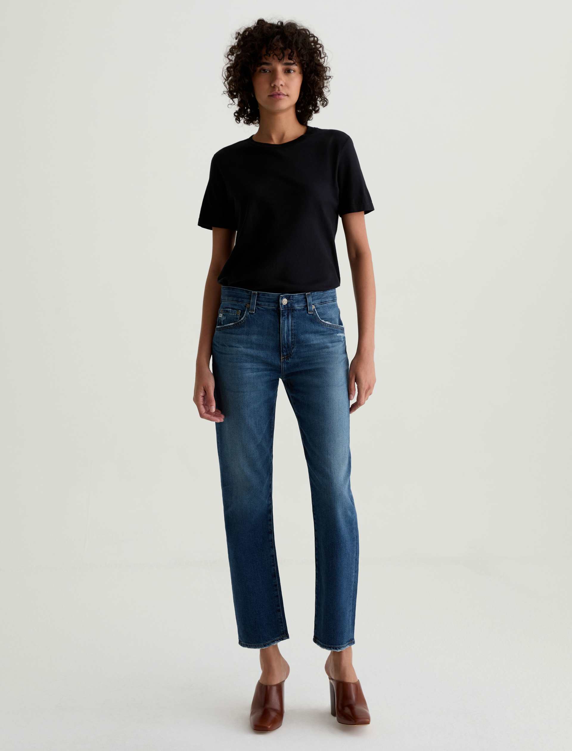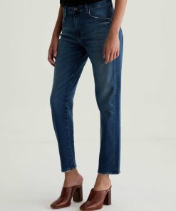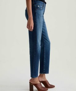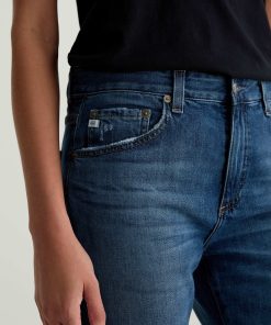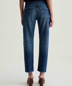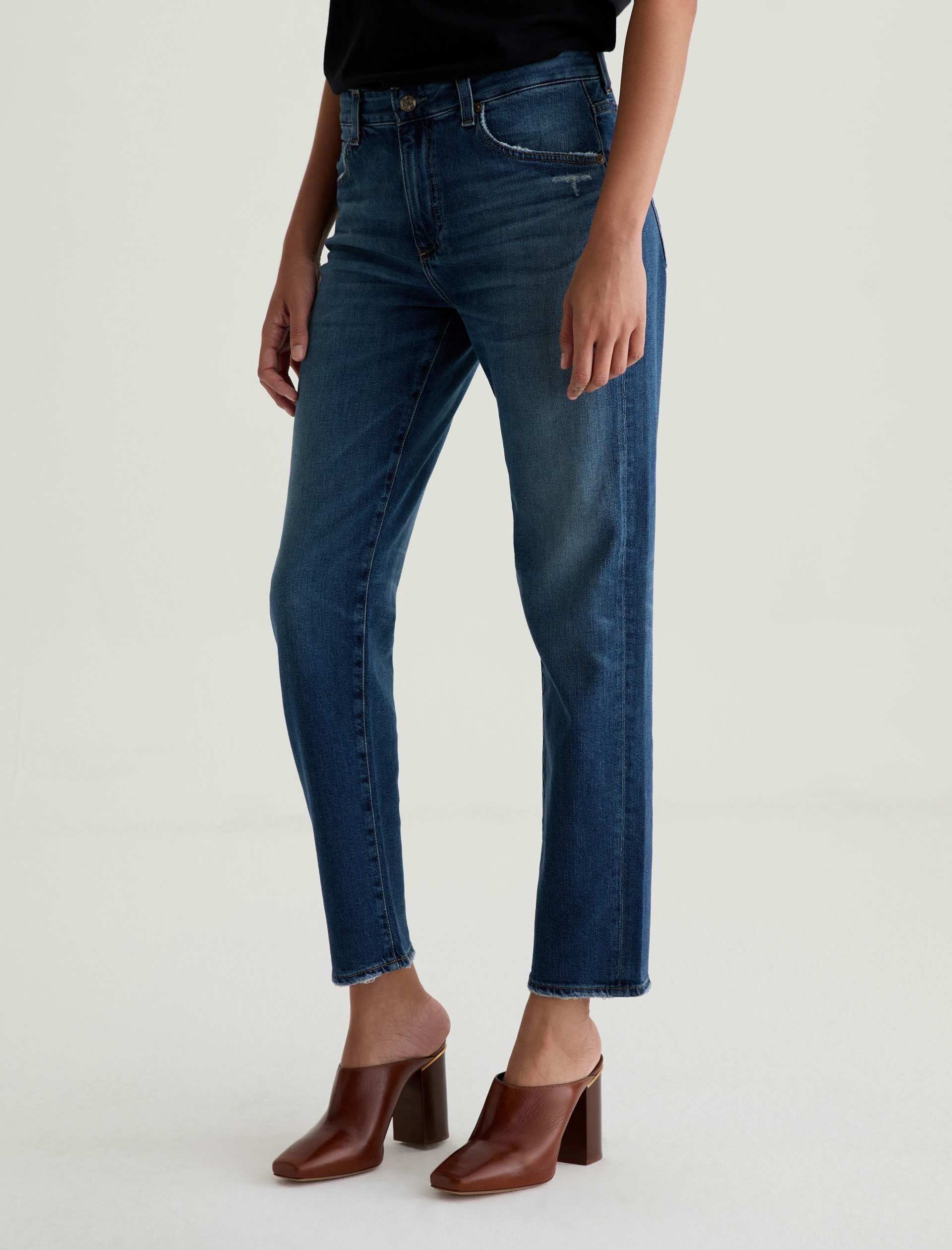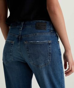 Our Ex-Boyfriend Slim jean for women features a slouchy-slim fit in an AG-ed™ medium-indigo wash. It’s got a broken-in fade, tattered back hems, and a bit of distressing at the pockets to emulate 10 years of wear. Crafted from 10 oz. Japanese comfort-stretch denim, these mid-rise jeans fit relaxed from hip to knee befo