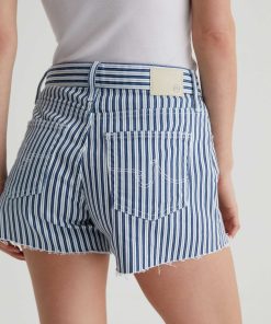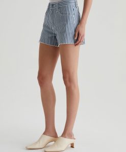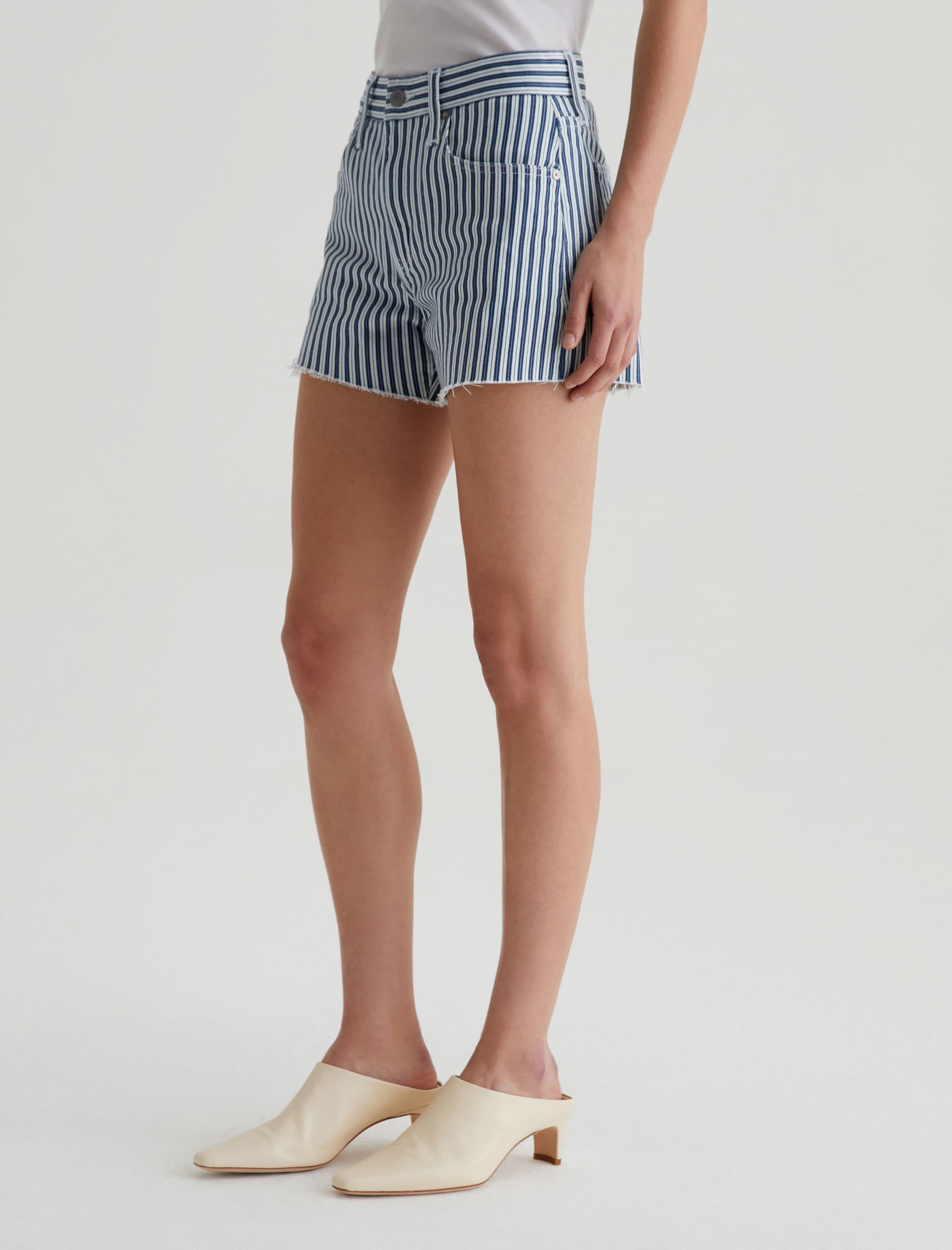 The Halle Short hints at a vintage nautical influence in comfort-stretch denim with an indigo yarn-dye stripe pattern. These high-rise cutoffs are cut for a relaxed silhouette with ease through the hips and raw, cut hems.