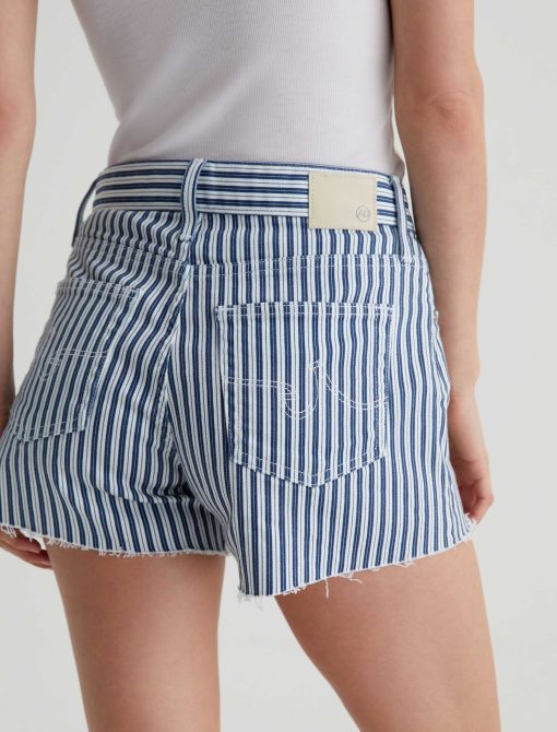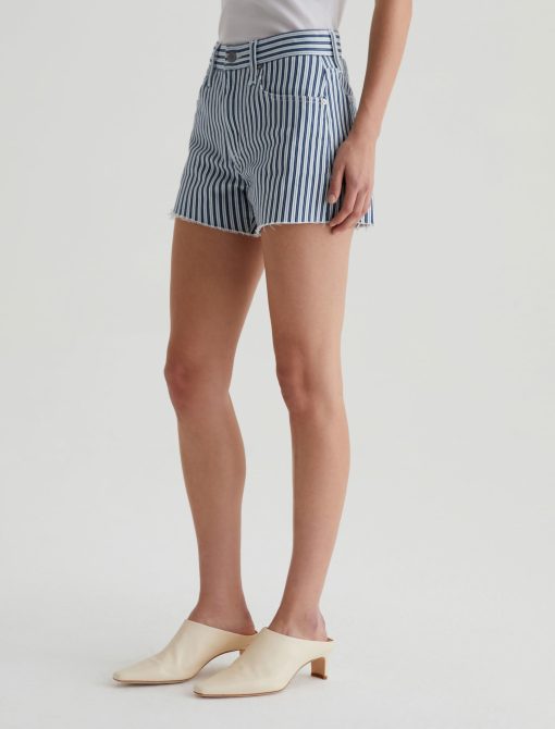 The Halle Short hints at a vintage nautical influence in comfort-stretch denim with an indigo yarn-dye stripe pattern. These high-rise cutoffs are cut for a relaxed silhouette with ease through the hips and raw, cut hems.