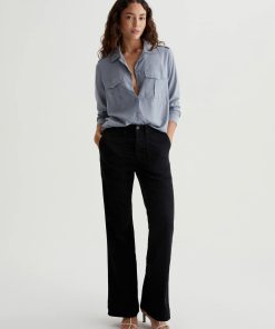 The Hattie Crop is a high-rise barrel made from non-stretch denim. In an AG-ed™ light wash to resemble 17 years of authentic wear, it is designed with raw hems, and offers a structured shape with a casual, lived-in finish.