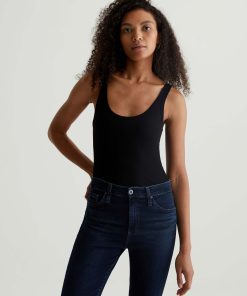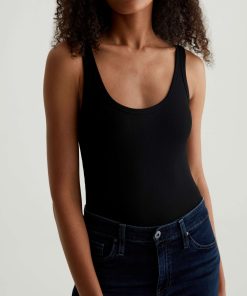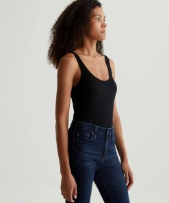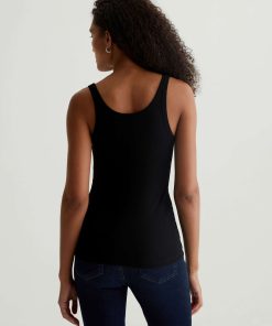 The Jaxon Tank for women features a fitted silhouette with a scoop neckline and slim straps in a racer-inspired shape. A true wardrobe staple in classic black, this women’s tank top has self-binding details for a clean, timeless aesthetic that’s versatile and easy to layer. It’s designed an eco-friendly 2×1 lyocell rib