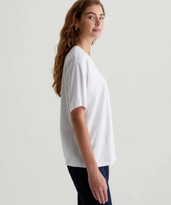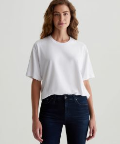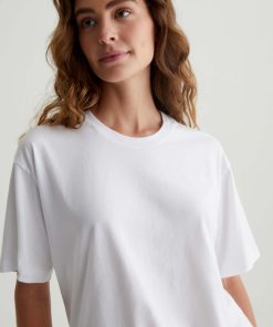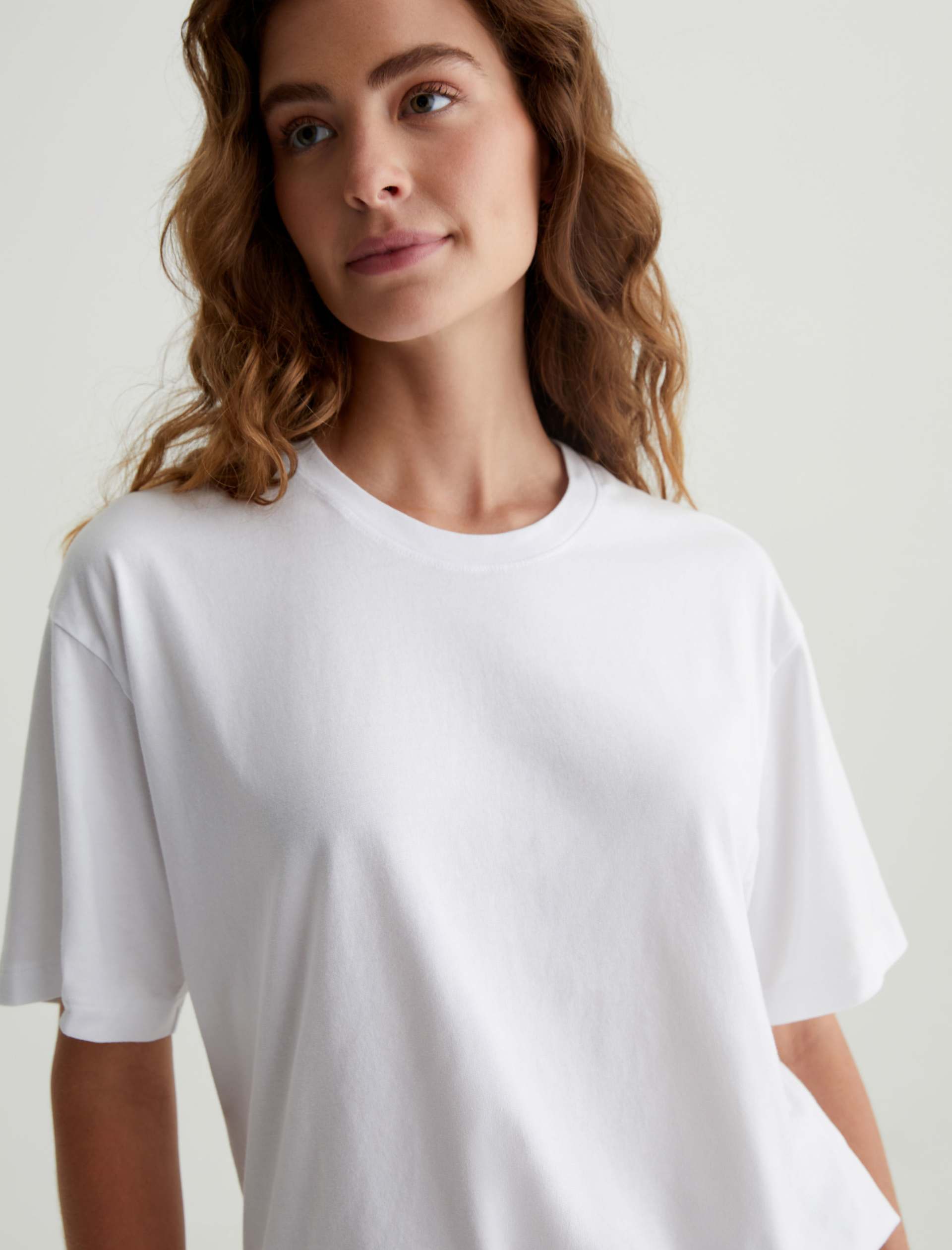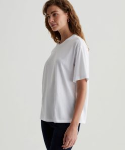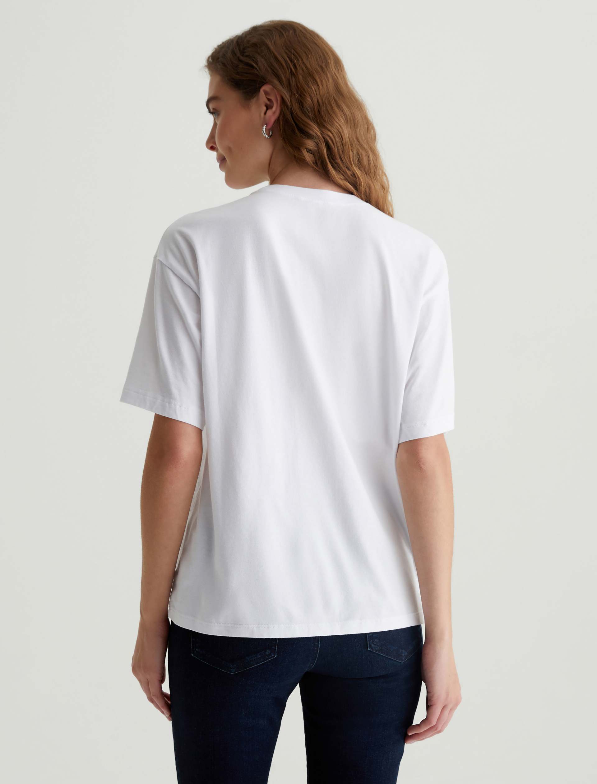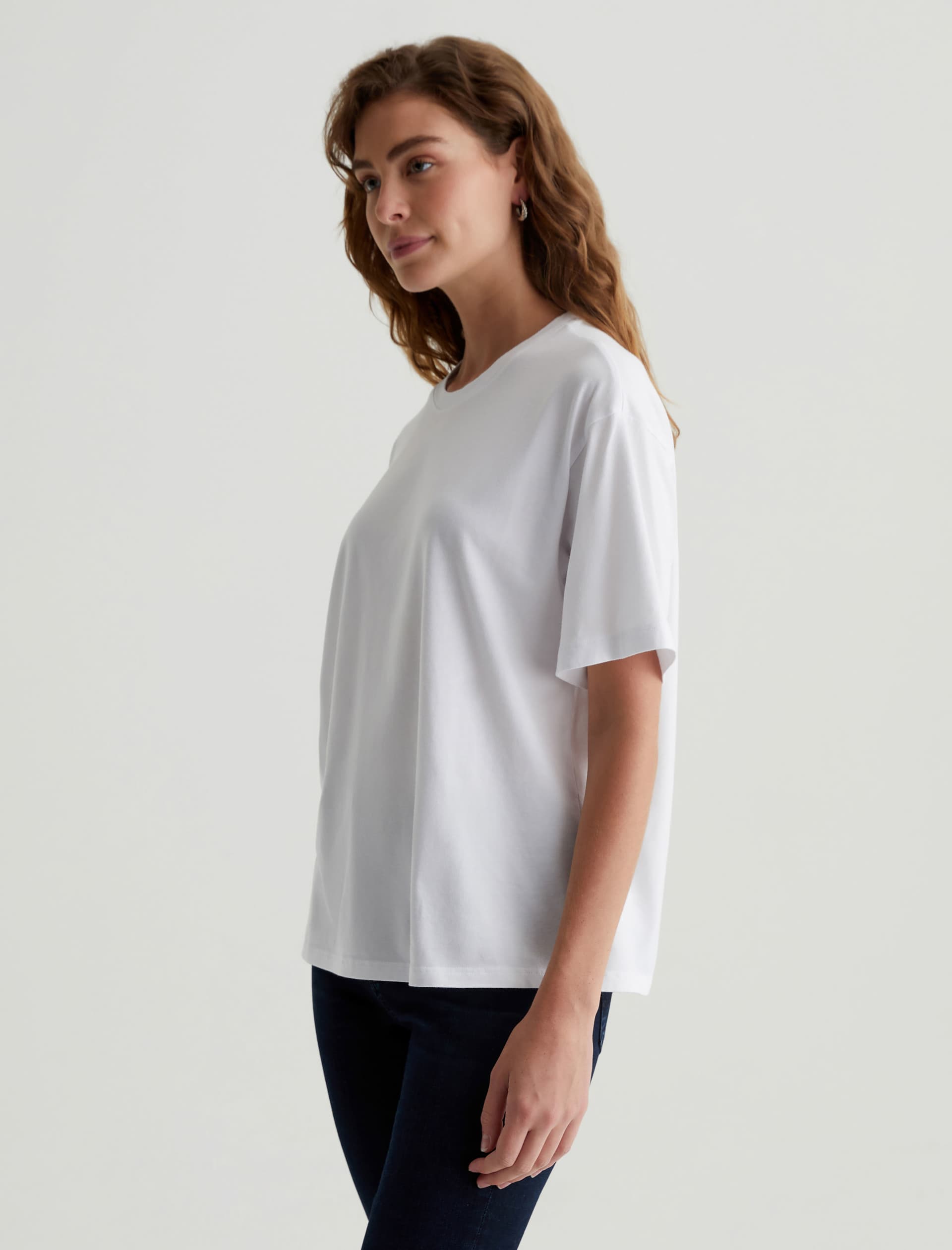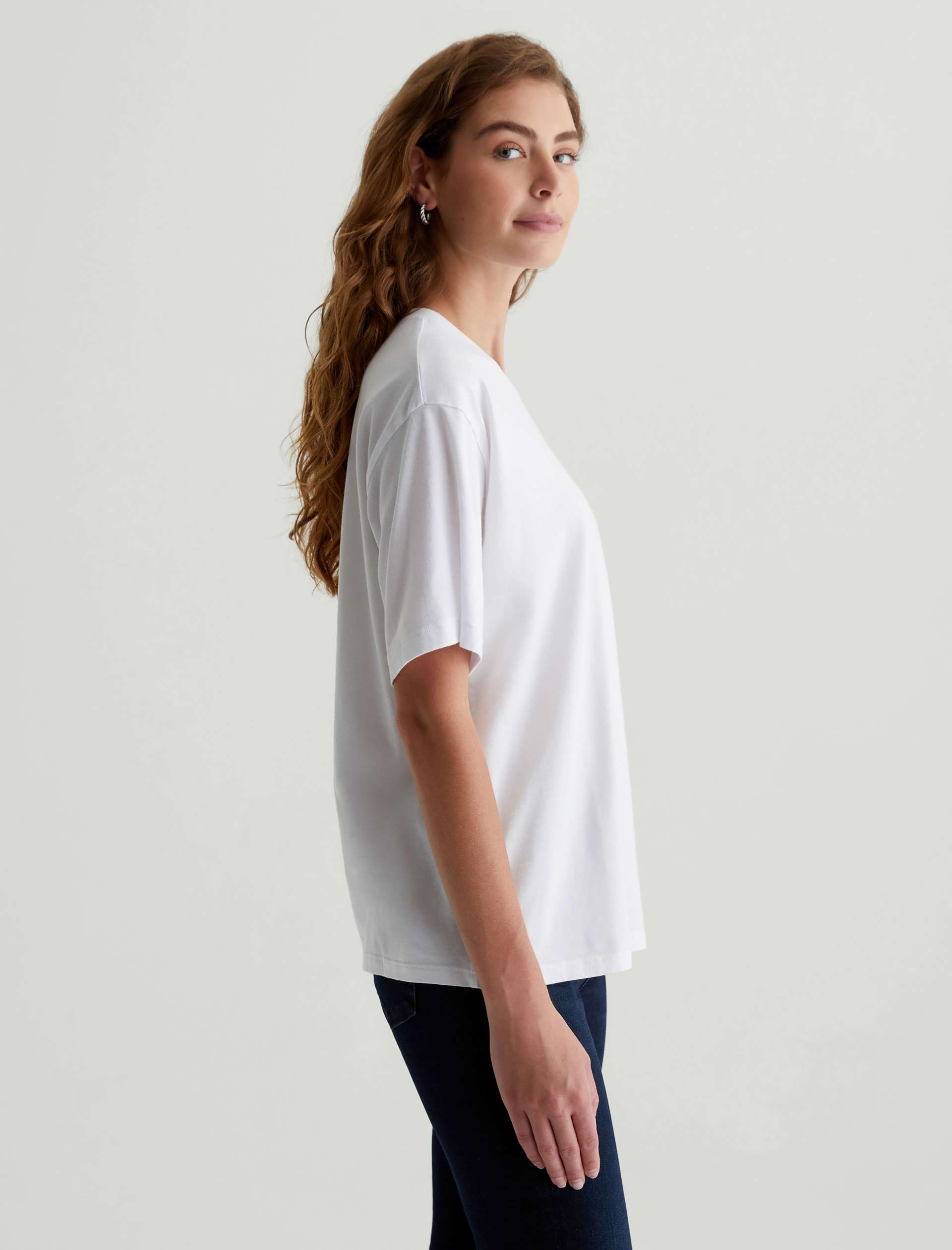 The Karter Ex-Boyfriend S/S Crew in white is our first introduction to a relaxed fit short sleeve crew. Drop shoulders creates a modern, oversized take on the “borrowed from your boyfriend” look. Our Jersey Knit offers a luxurious comfort that is unrivaled—knitted with both S-twist and Z-twist yarn to sustain longevity