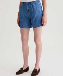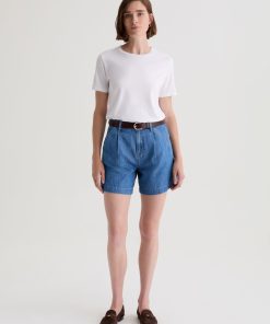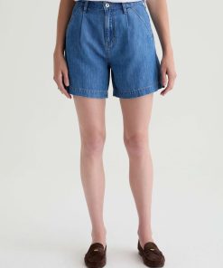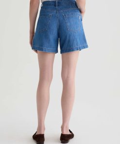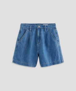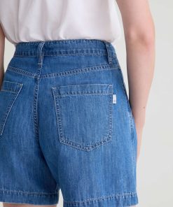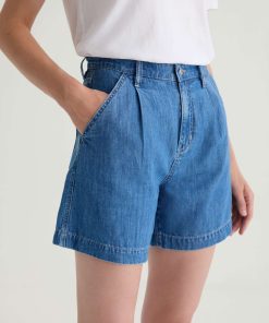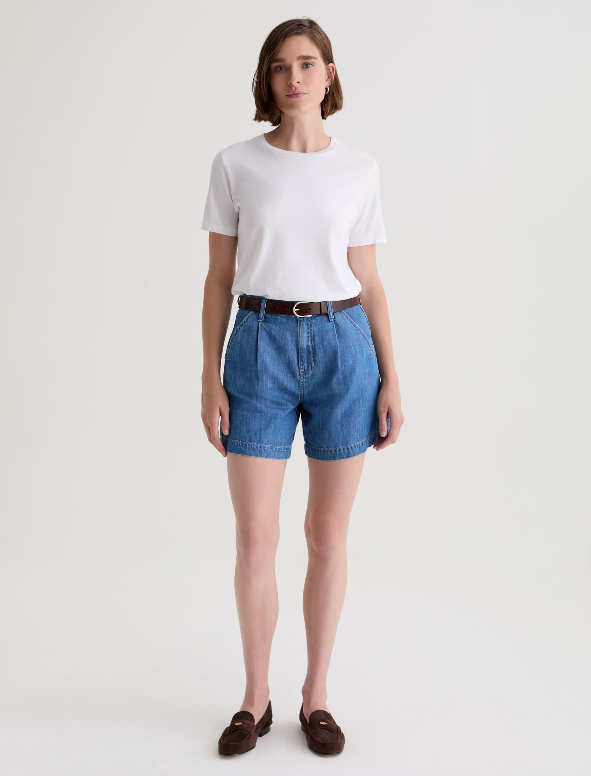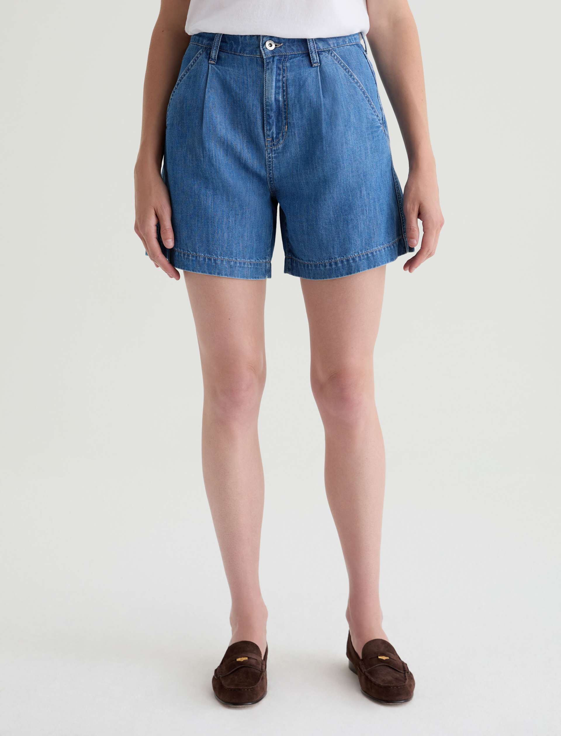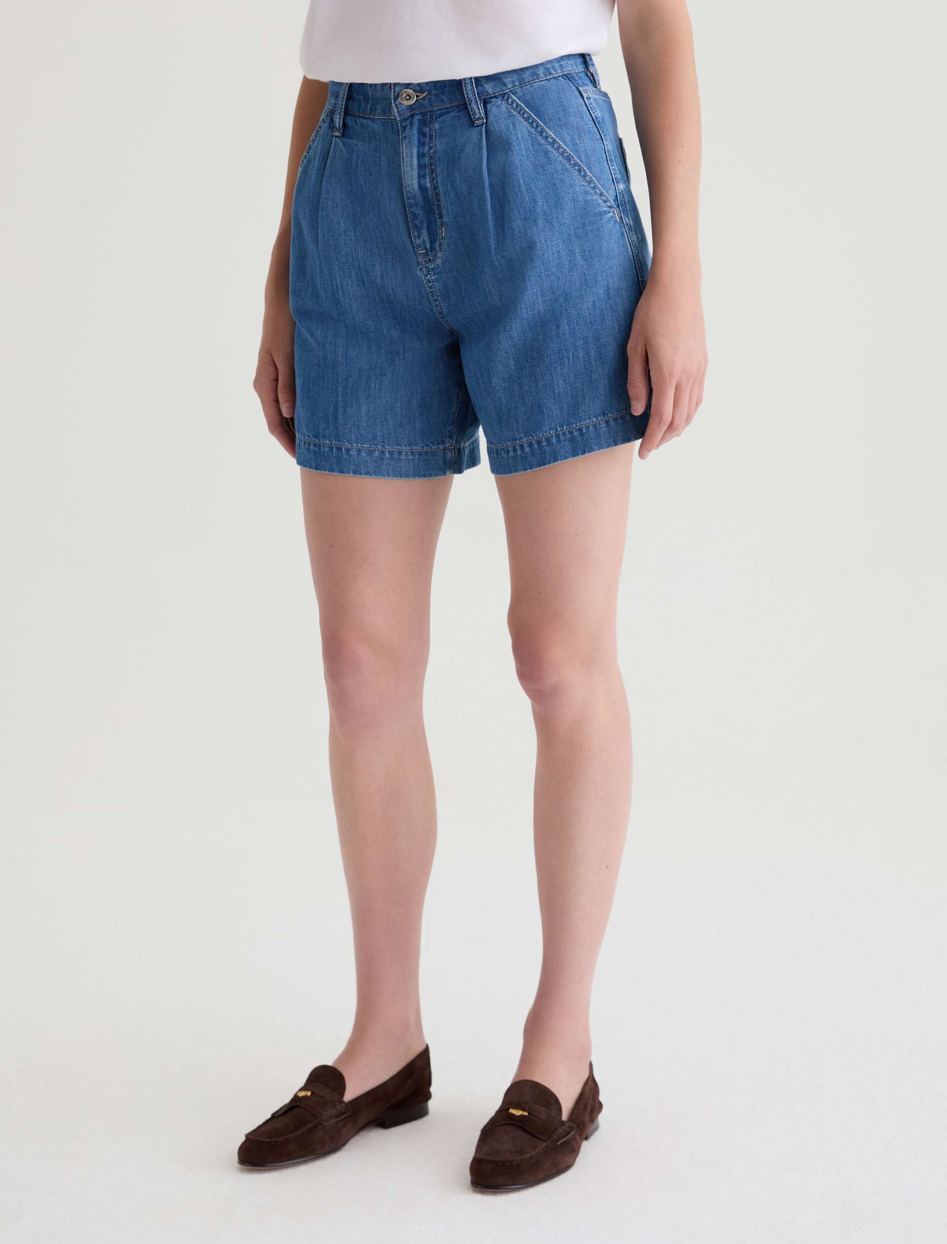 The Mandy Short is a high-rise style crafted from non-stretch Scarlett Irisblue Chambray in a medium blue wash. Designed with trouser pockets and clean stitched hems for a polished, structured look.