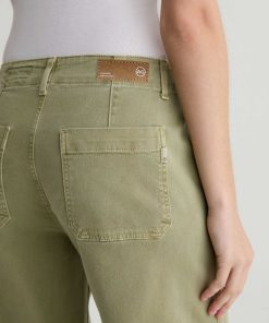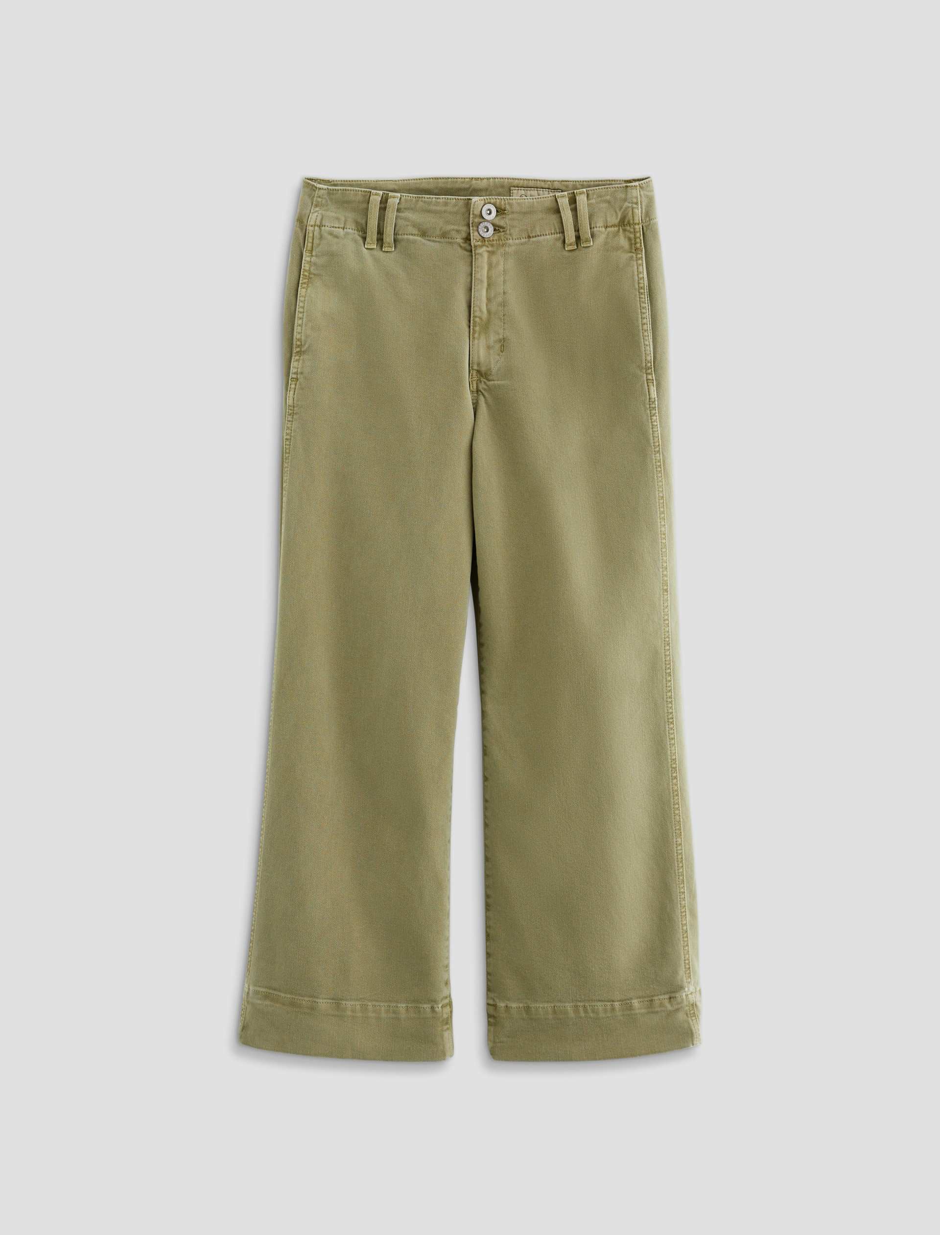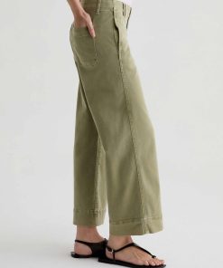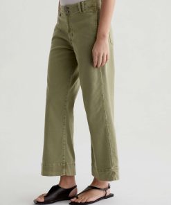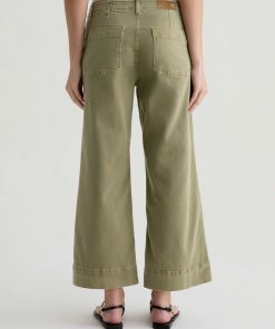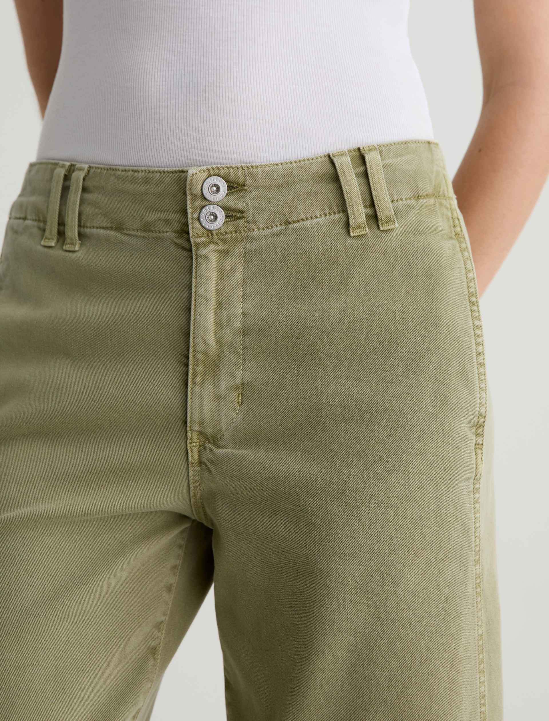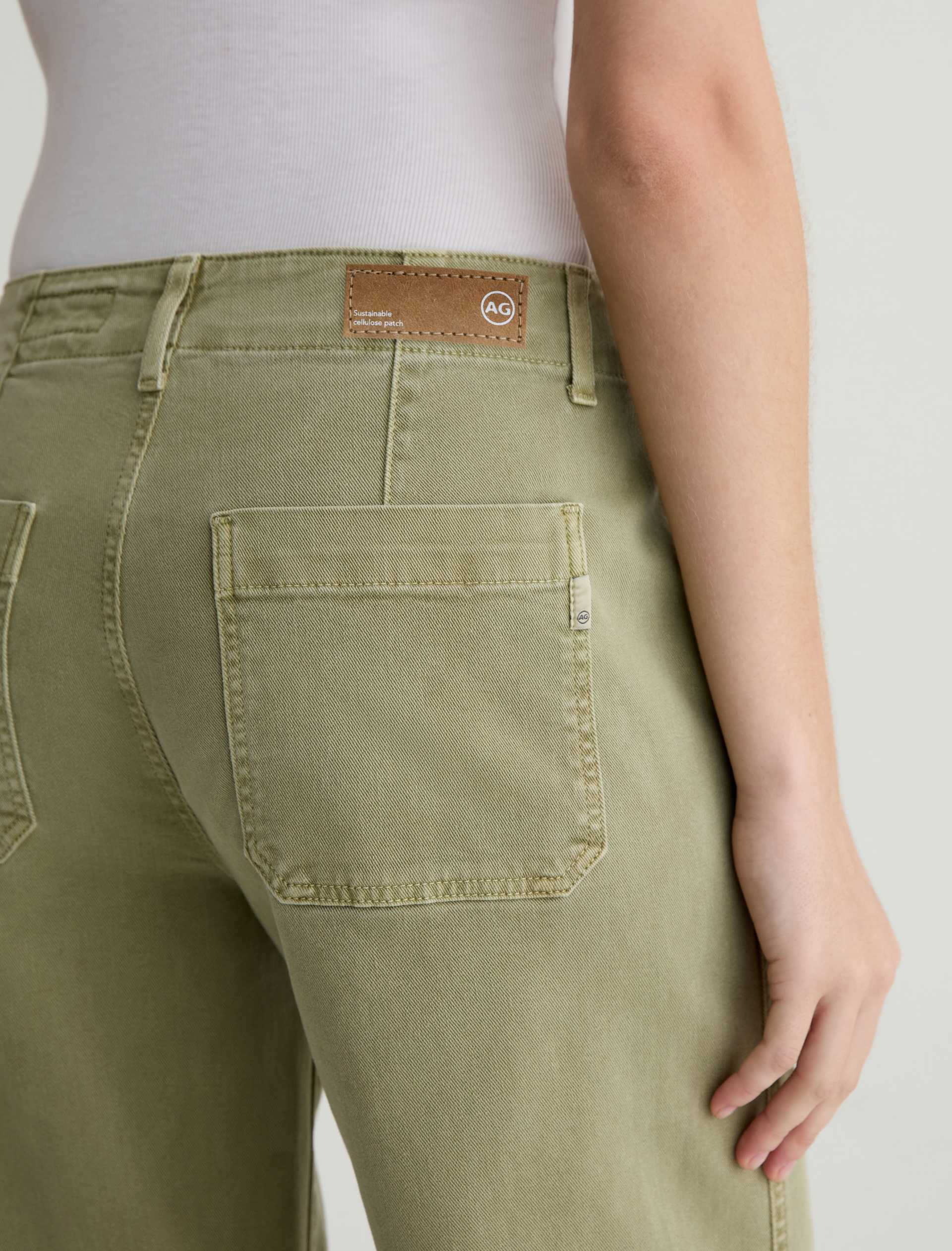 The Natasha is a mid-rise cropped wide-leg jean crafted from AG Cloud Soft Denim™ in a green comfort stretch wash. Designed with trouser pockets and double belt loops.