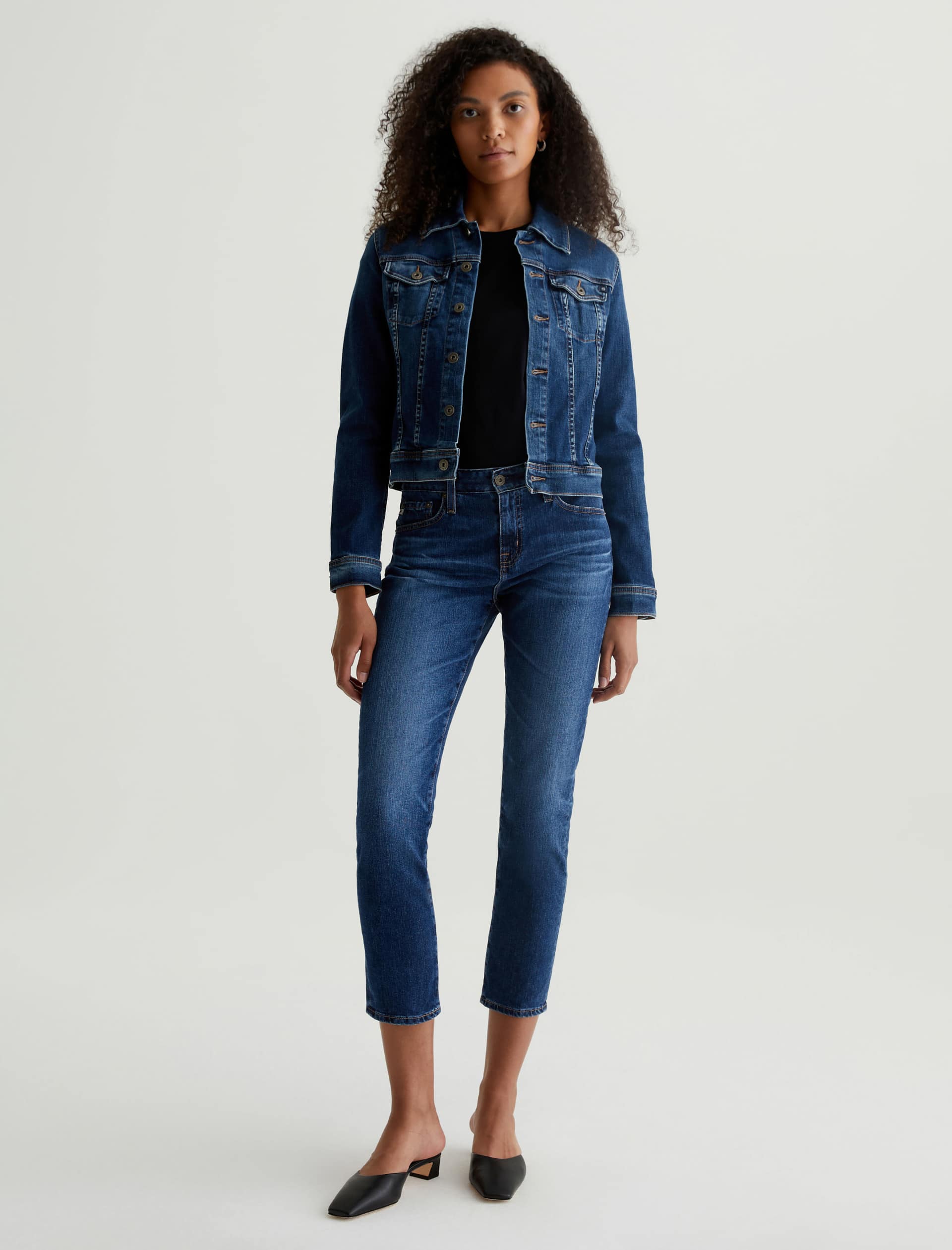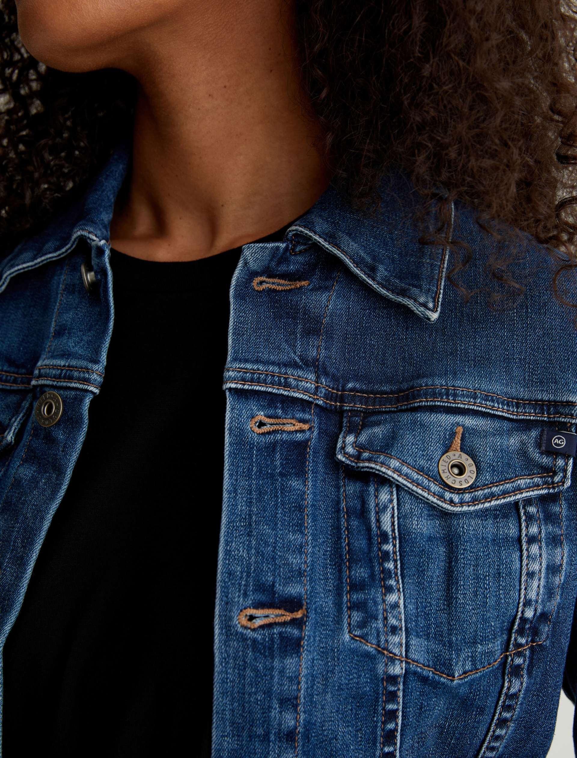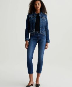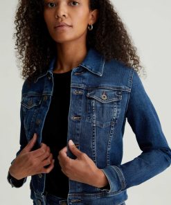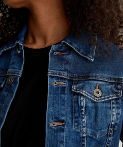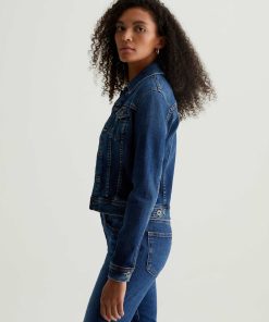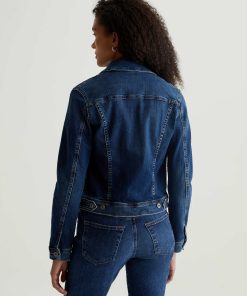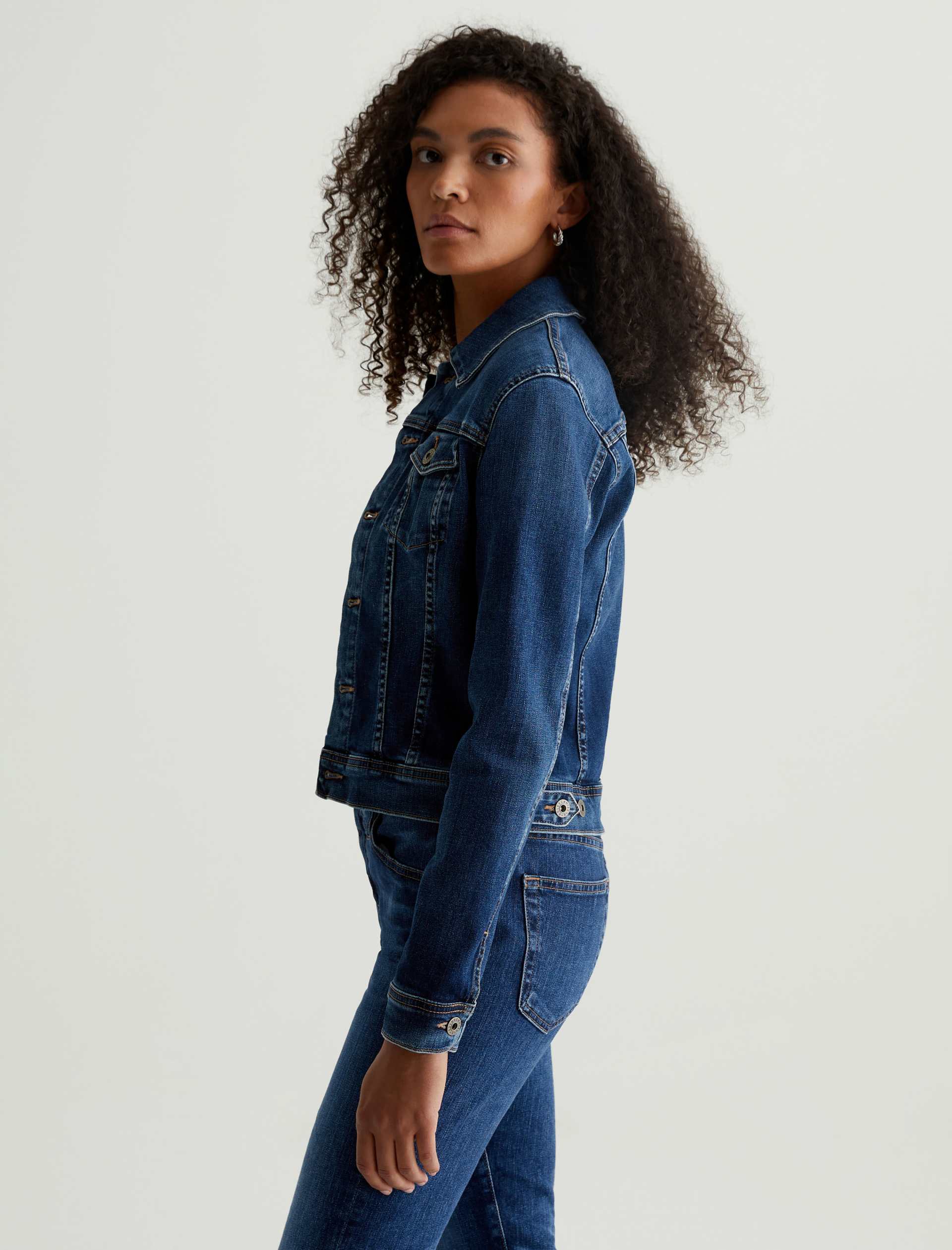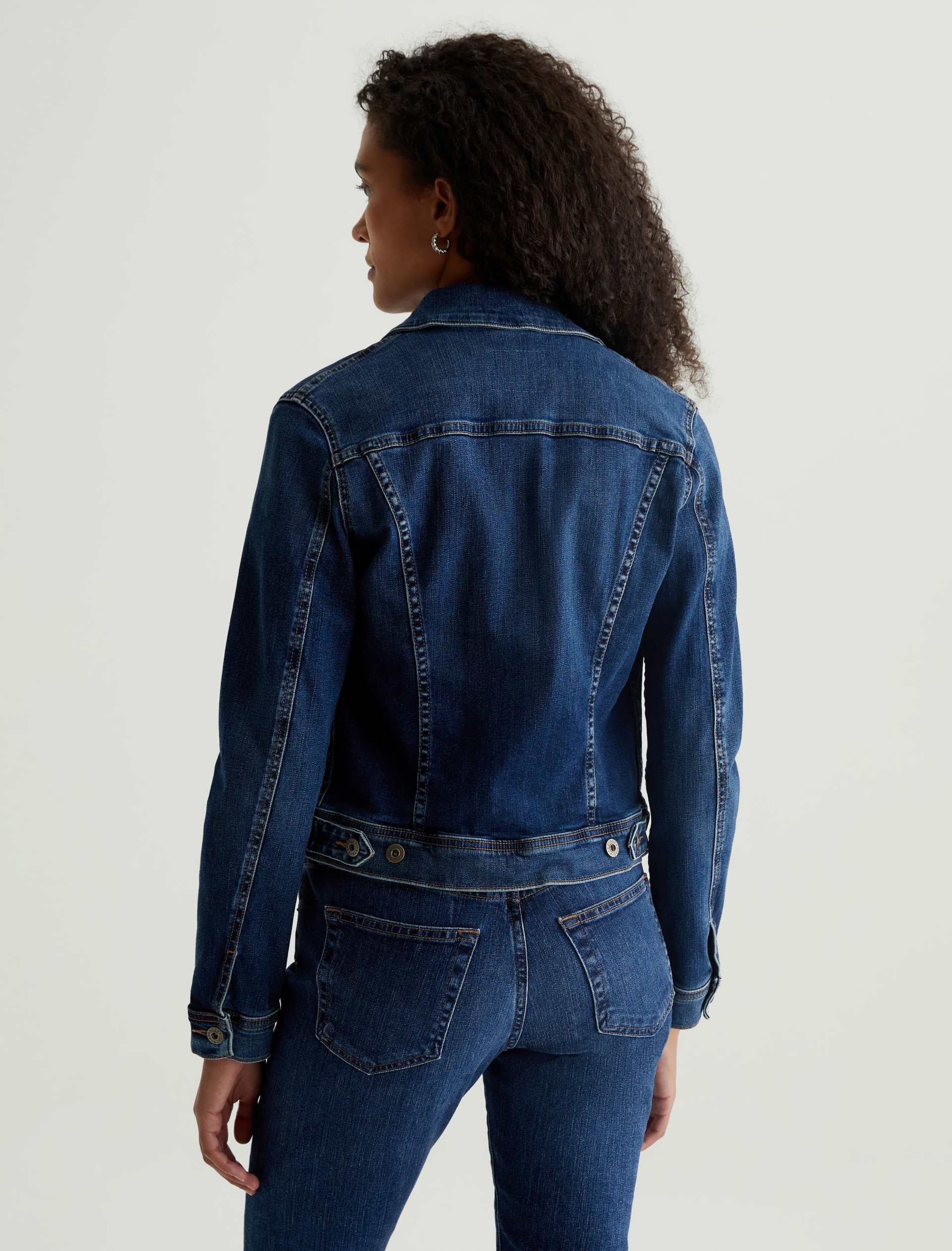 The Robyn Jacket is a slim jean jacket for women featuring a true vintage dark wash with placement shadows, fitted silhouette throughout, and classic chest pockets with tonal button closures. This women’s jacket is designed in a body-hugging 10 oz. Rouge Advanced Stretch Denim—a lightweight, super stretch fabric that l