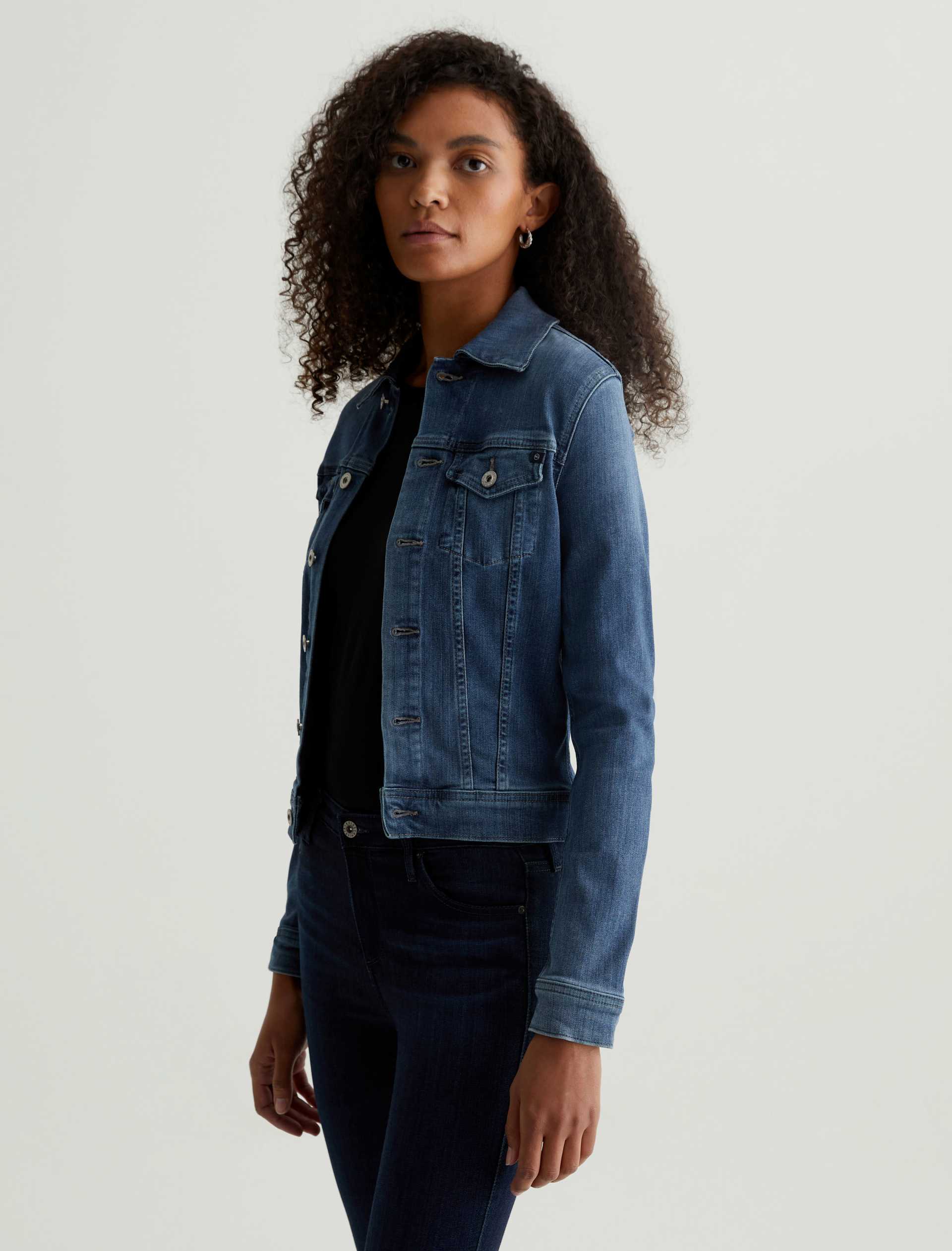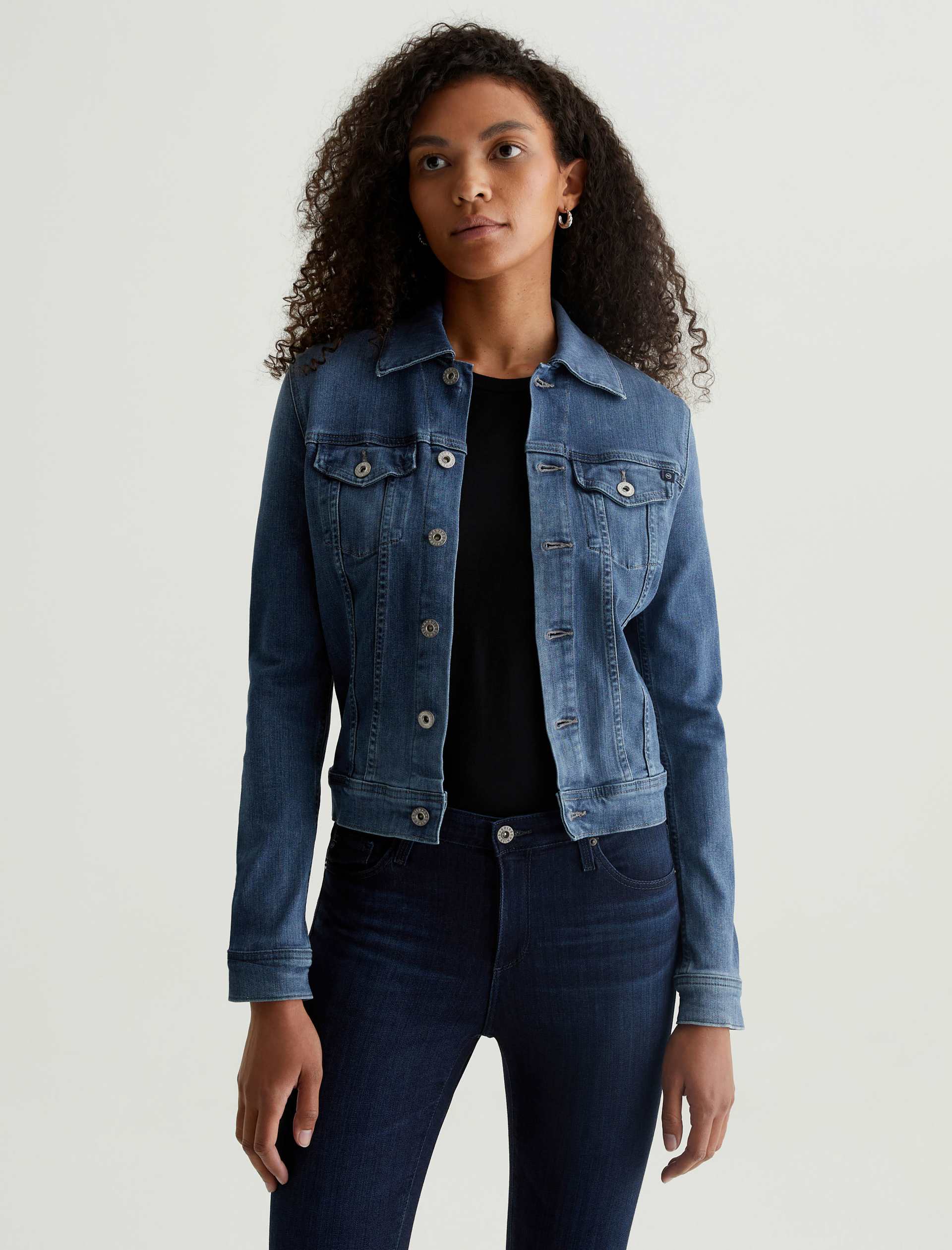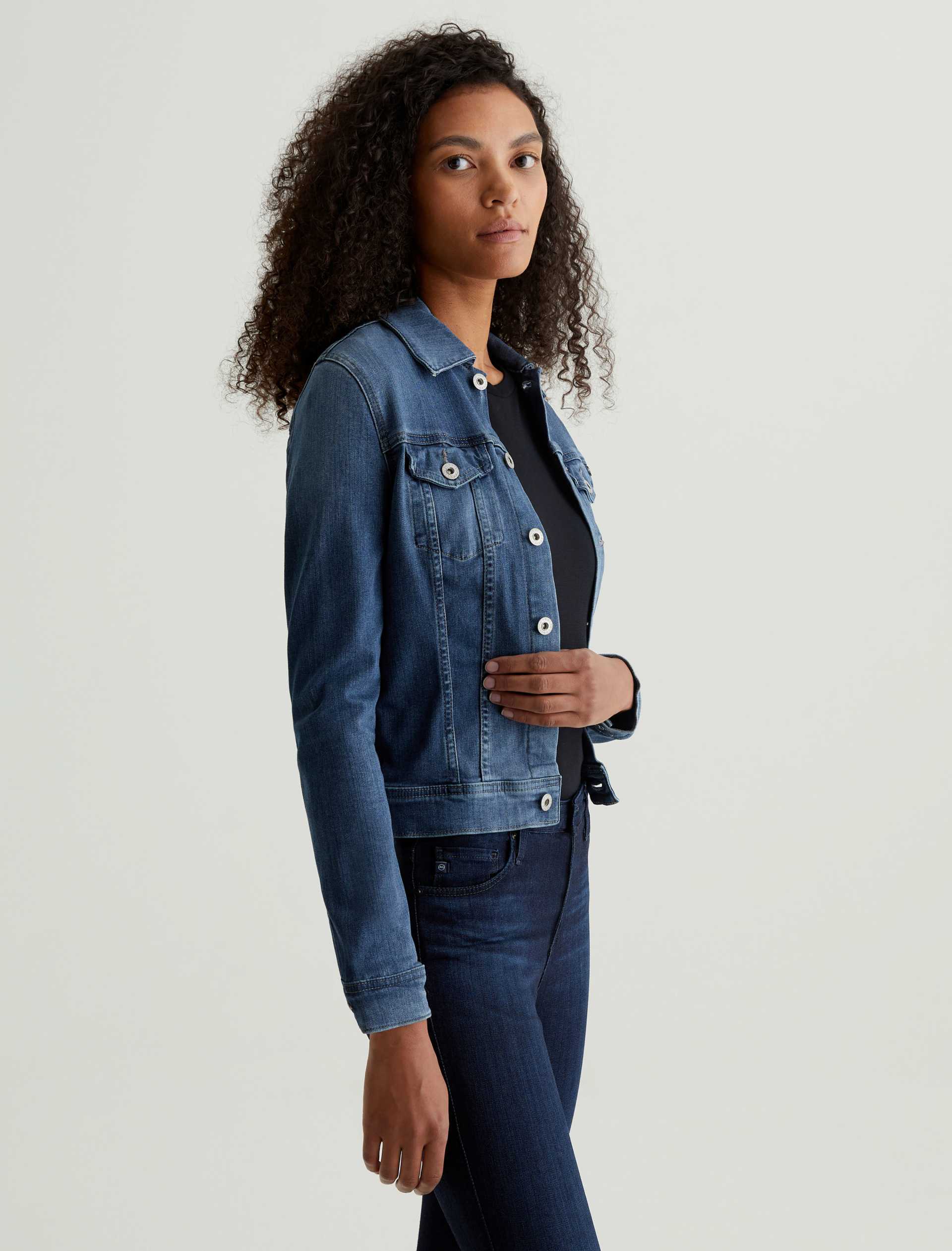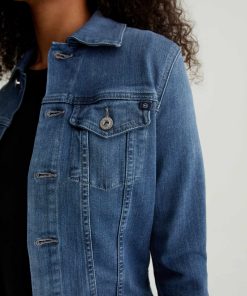 The Robyn Jacket for women is a slim-cut jean jacket in a faded blue wash. It’s a fitted version of the classic trucker, complete with flap pockets, tonal button closures, and adjustable waist tabs. This women’s jacket is designed in 10.5 oz. Superior Stretch Denim for premium comfort.