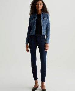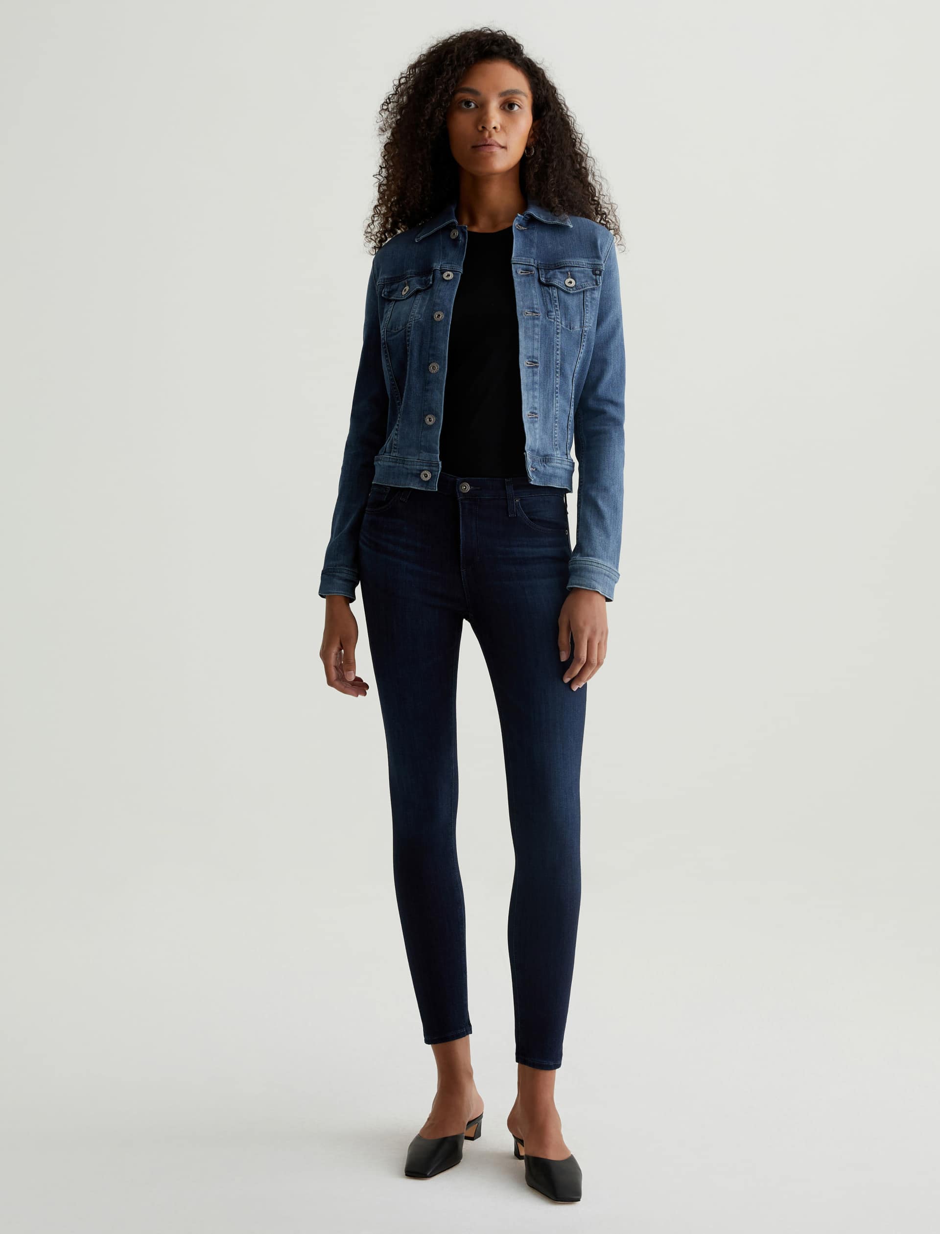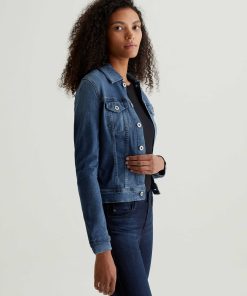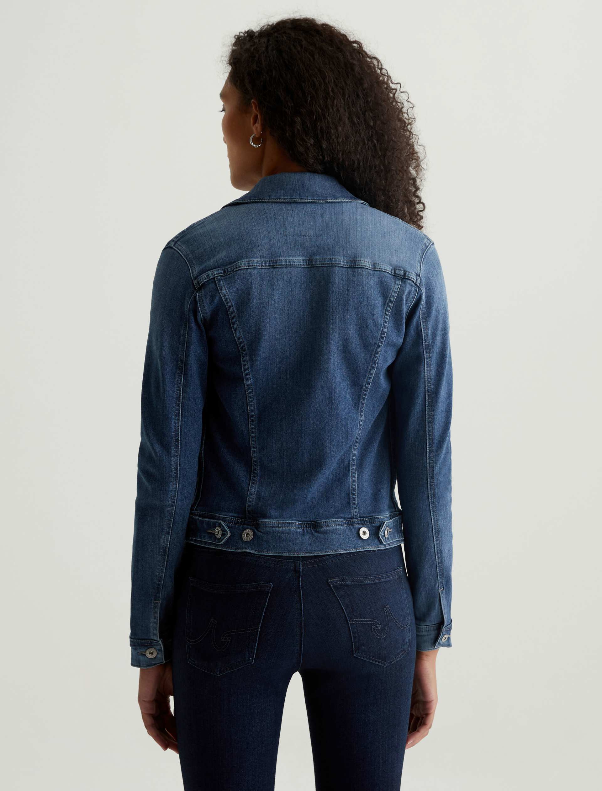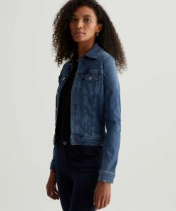 The Robyn Jacket for women is a slim-cut jean jacket in a faded blue wash. It’s a fitted version of the classic trucker, complete with flap pockets, tonal button closures, and adjustable waist tabs. This women’s jacket is designed in 10.5 oz. Superior Stretch Denim for premium comfort.