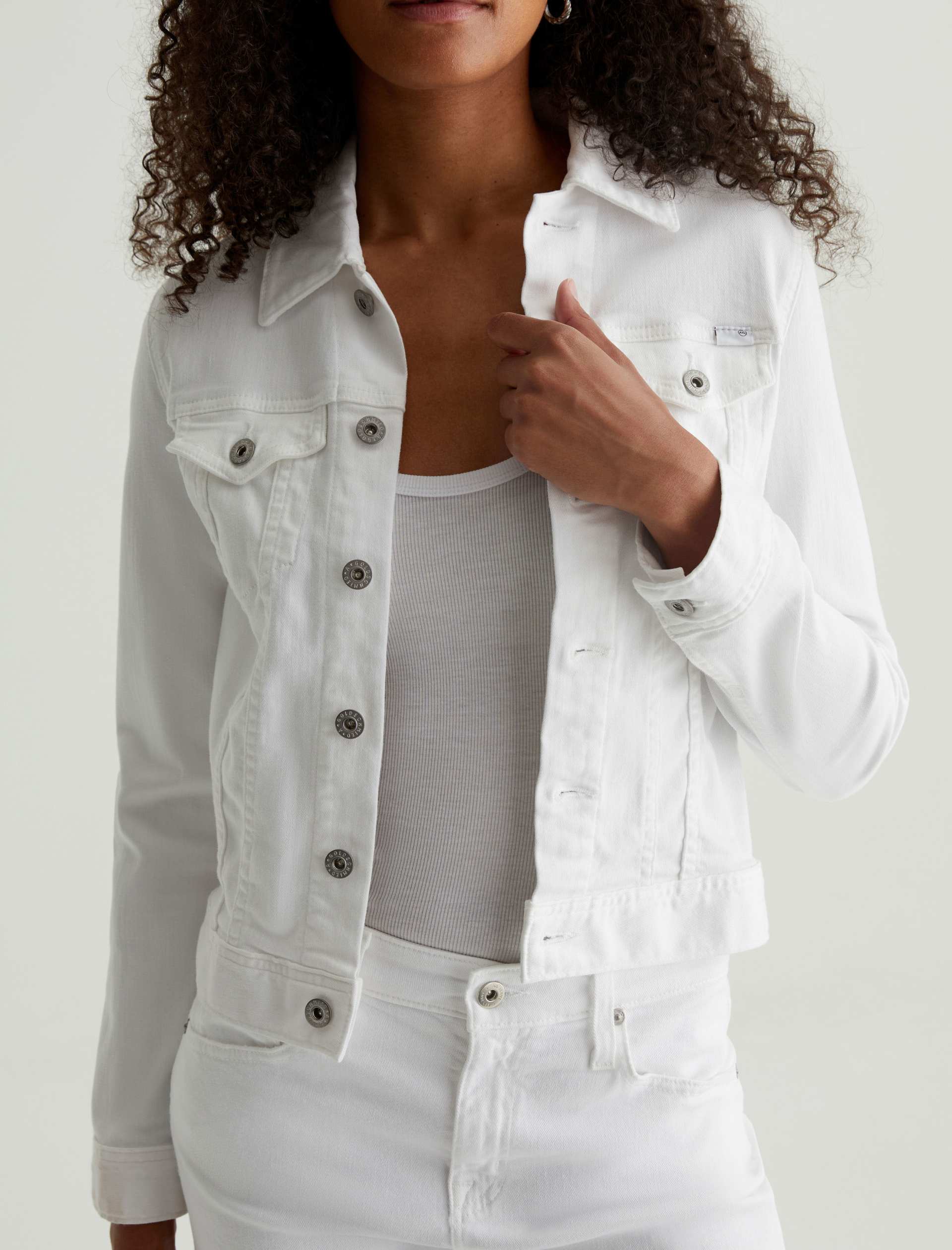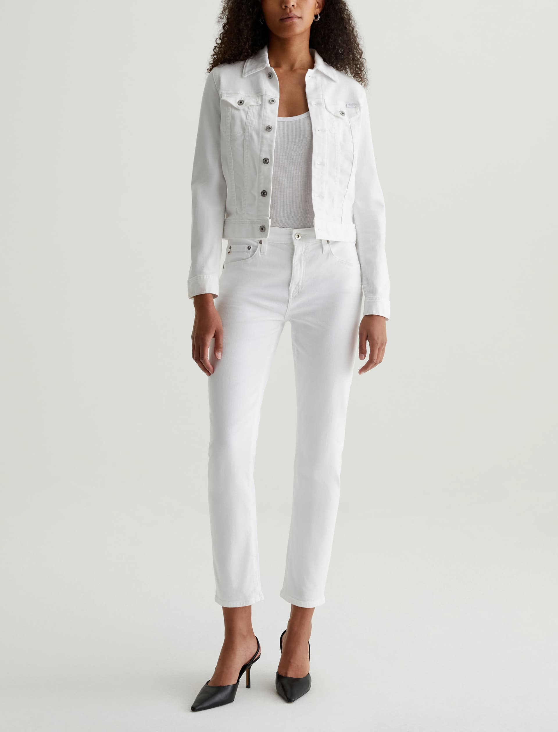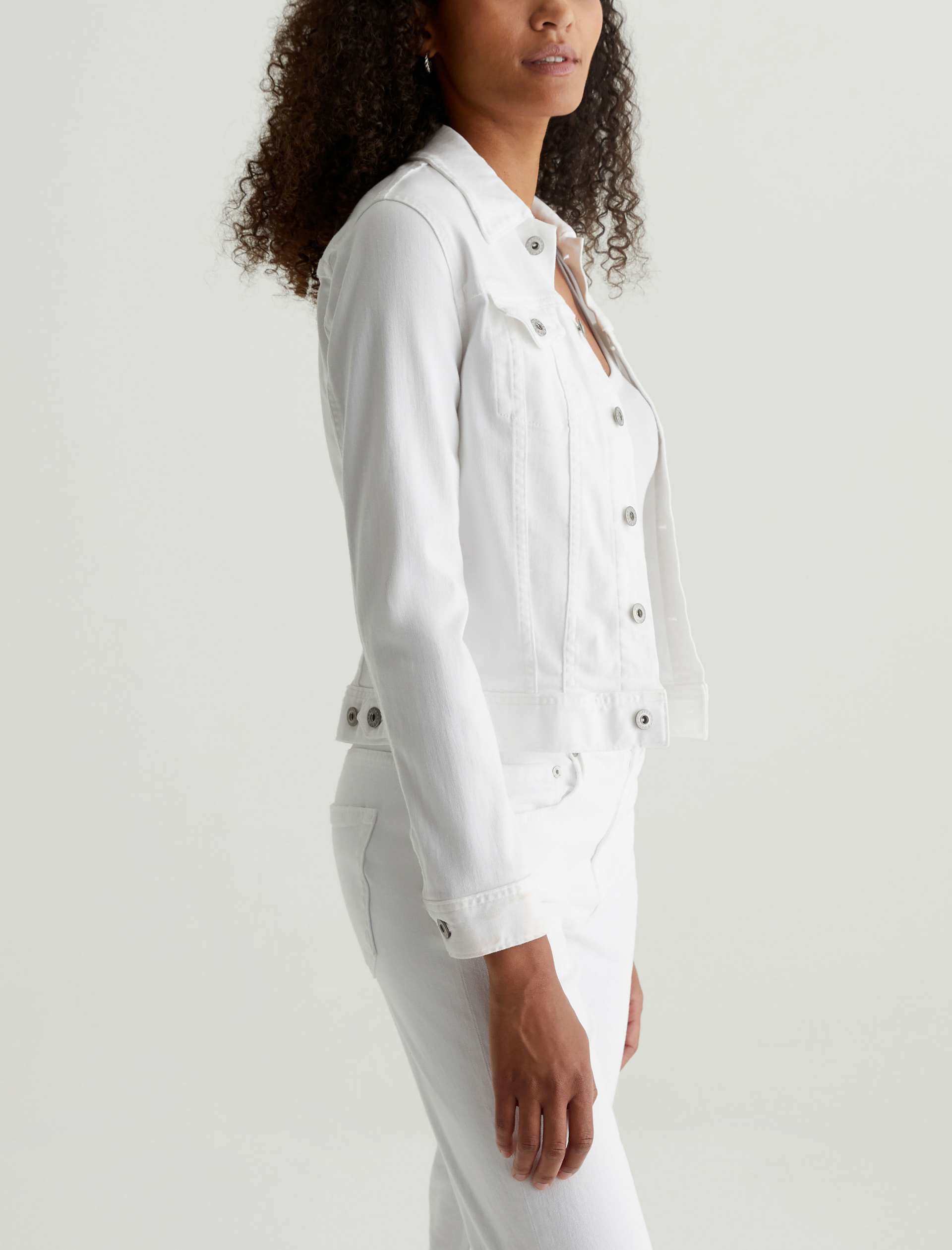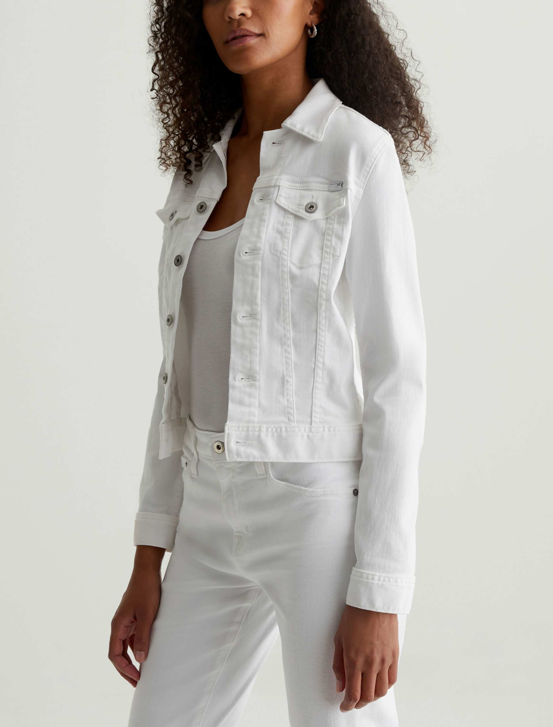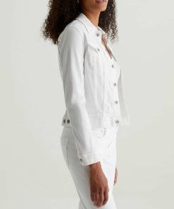 The Robyn Jacket is a slim jean jacket for women featuring a clean white wash, fitted silhouette throughout, and classic chest pockets with button closures. This women’s denim jacket is designed in a lightweight twill blend with added stretch for a luxurious feel and comfortable wear.