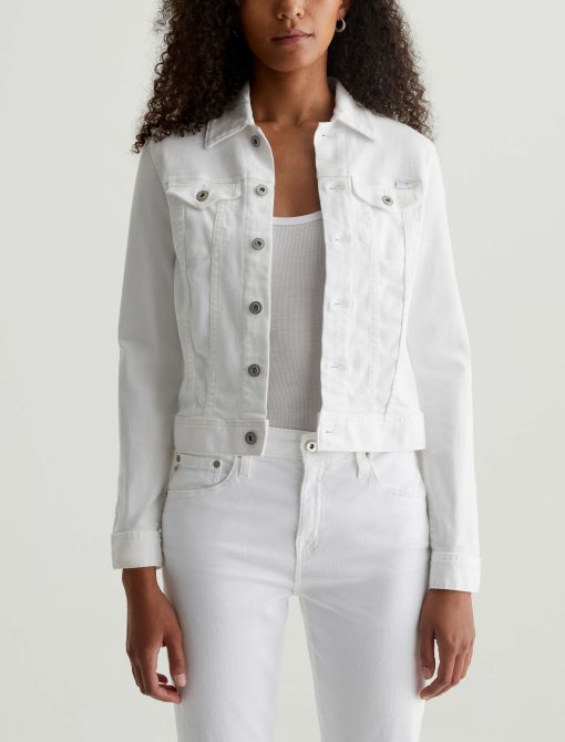 The Robyn Jacket is a slim jean jacket for women featuring a clean white wash, fitted silhouette throughout, and classic chest pockets with button closures. This women’s denim jacket is designed in a lightweight twill blend with added stretch for a luxurious feel and comfortable wear.