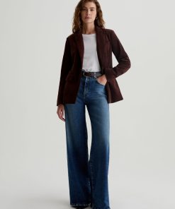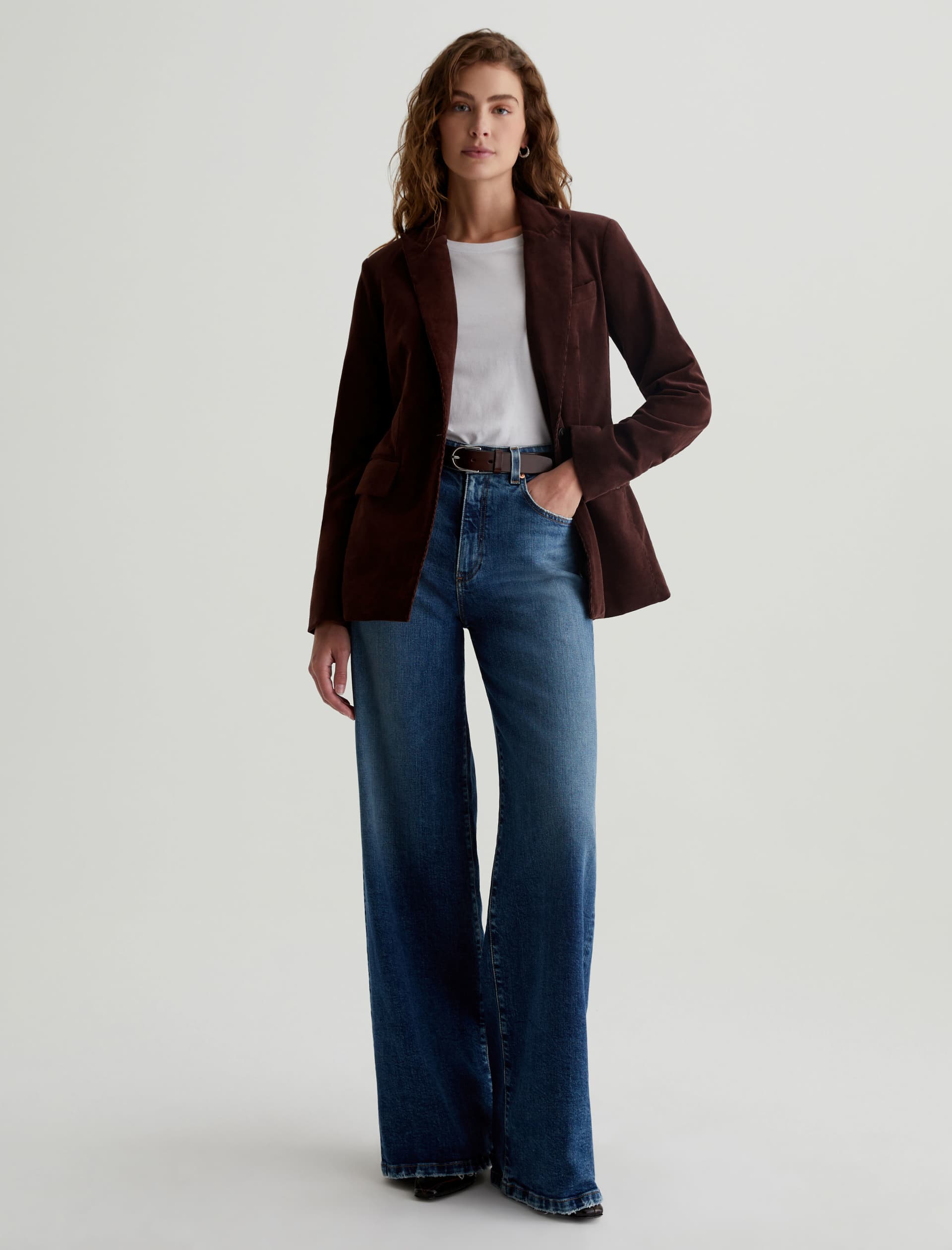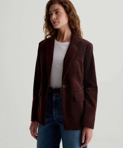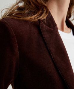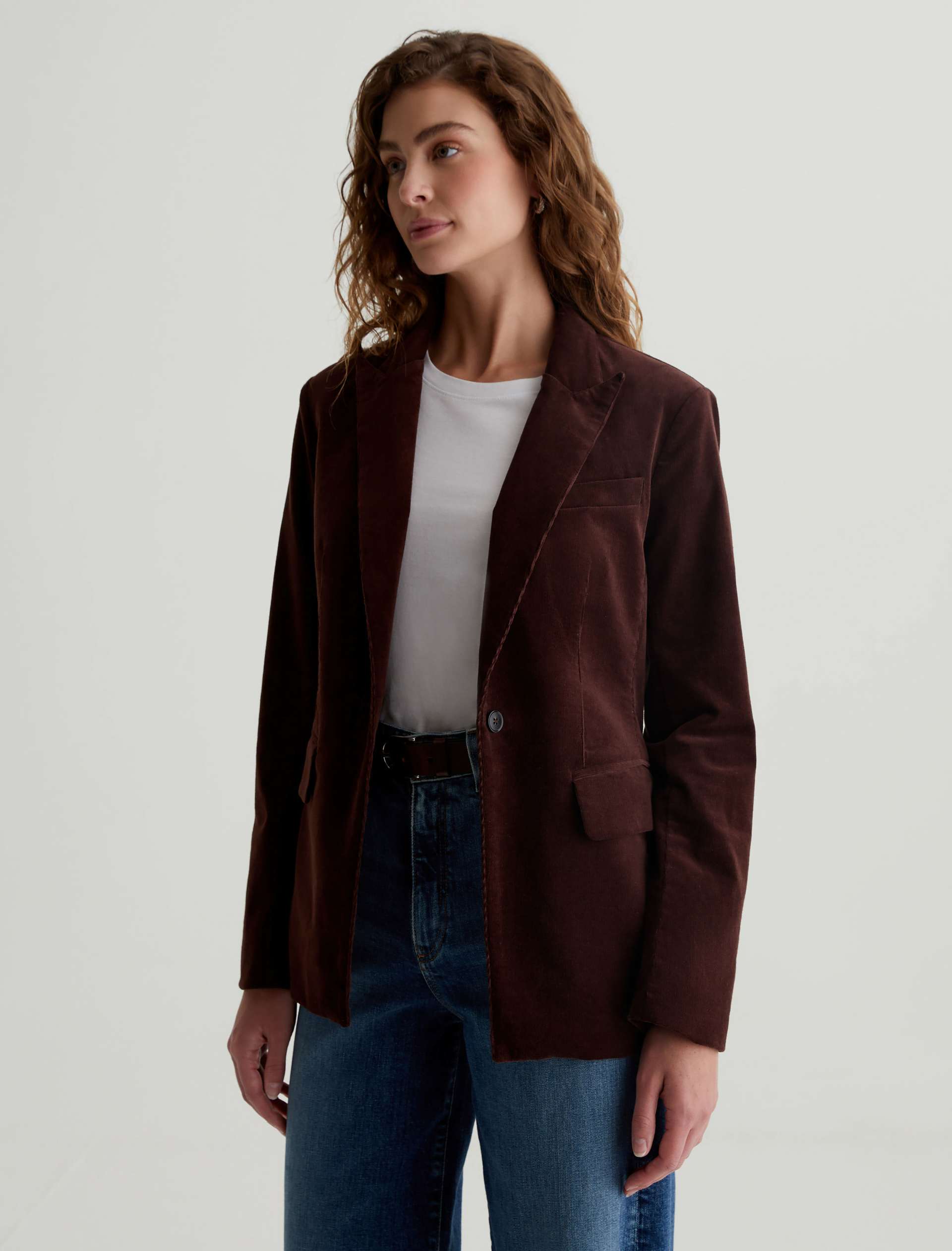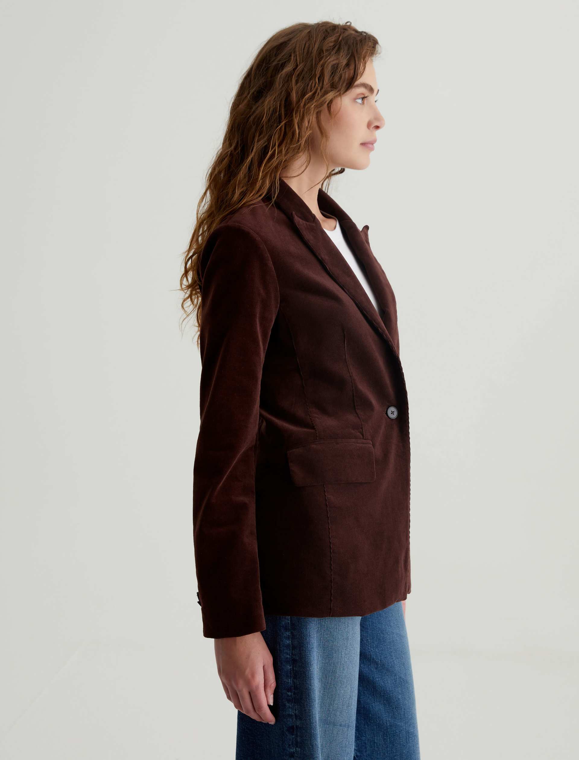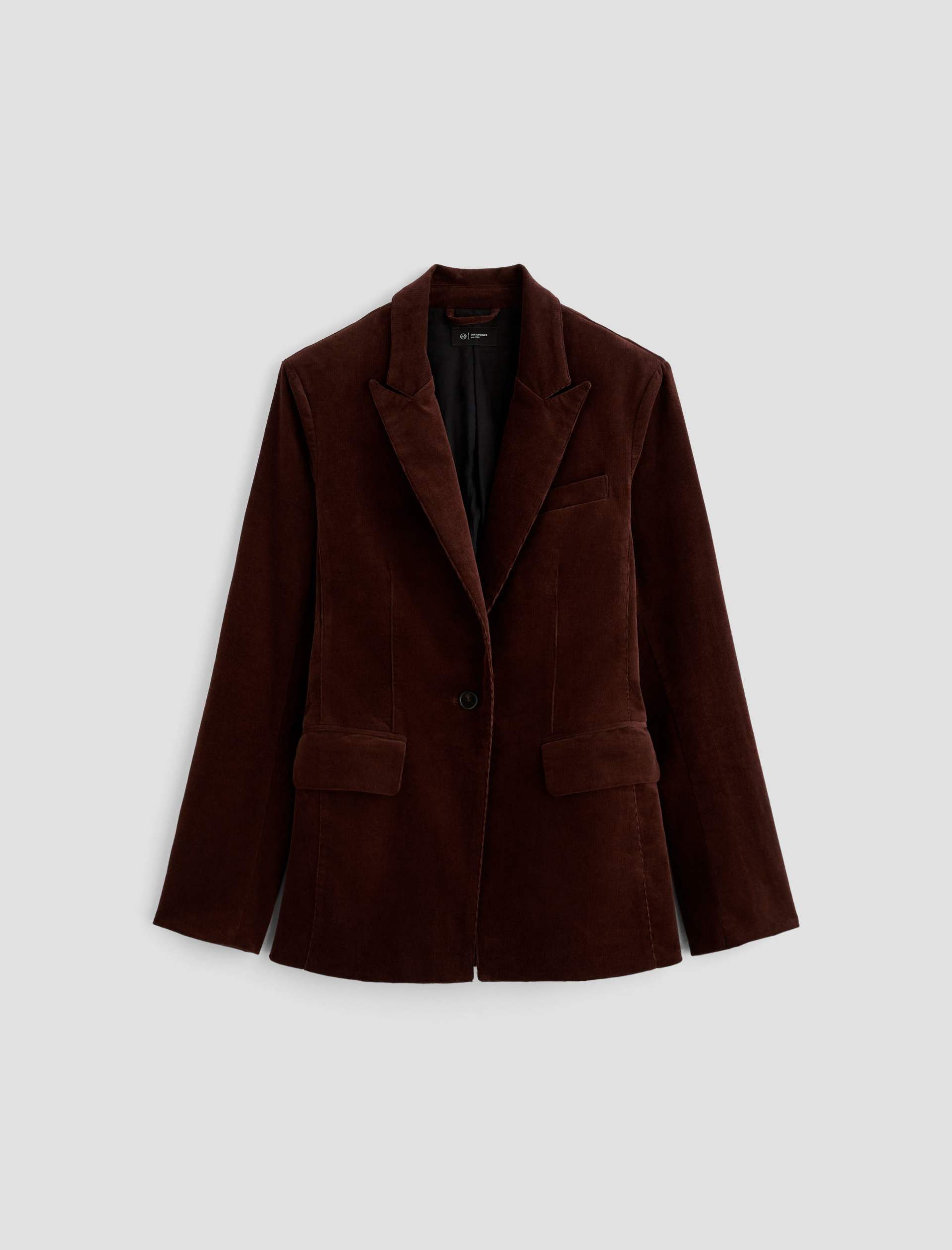 The Rue Corduroy Blazer brings a polished finish to any look. Done in a rich brown shade, it’s soft to the touch and blended with a bit of stretch. This tailored style looks sharp in a fitted silhouette with peaked lapels, flap pockets, and a single button at the front.