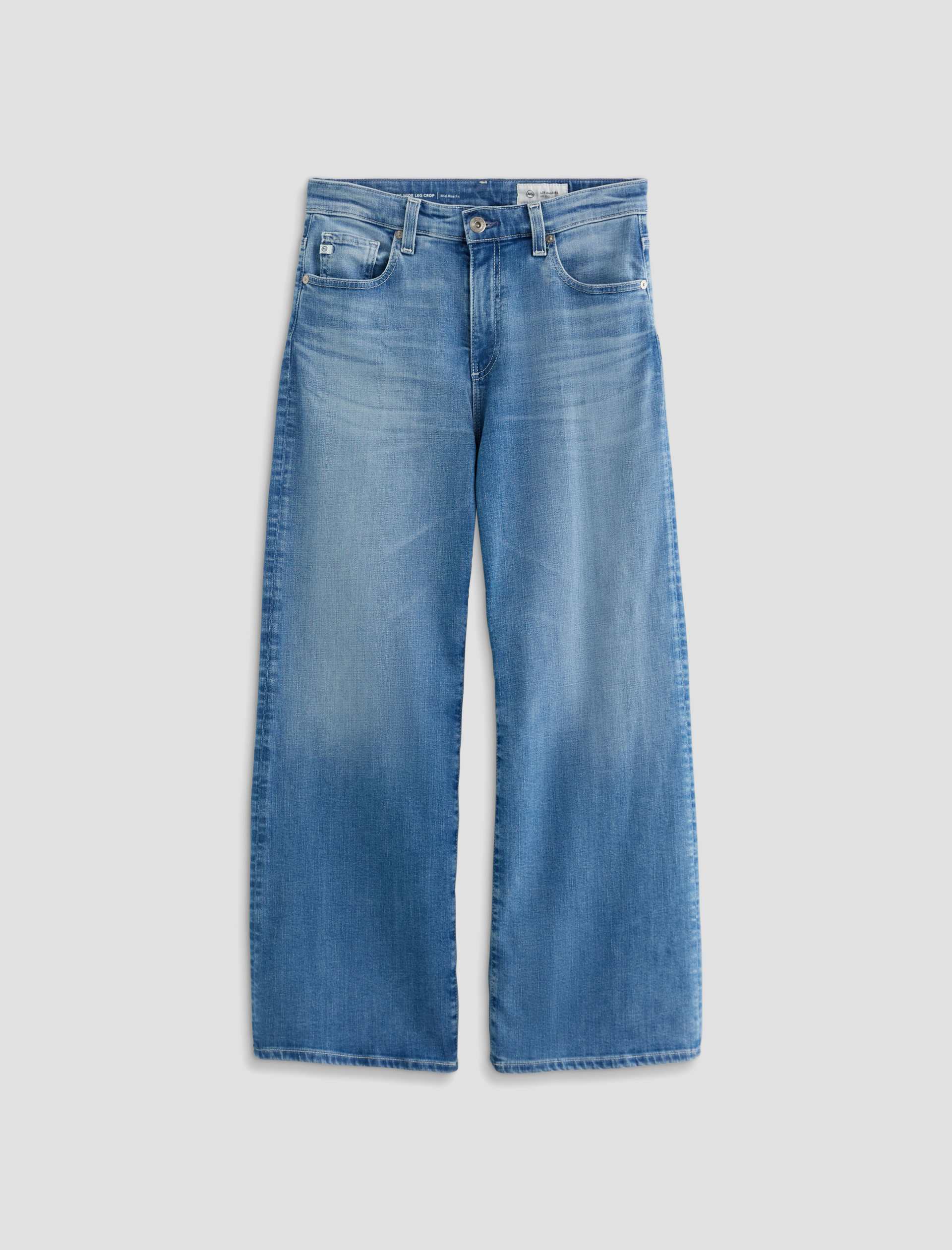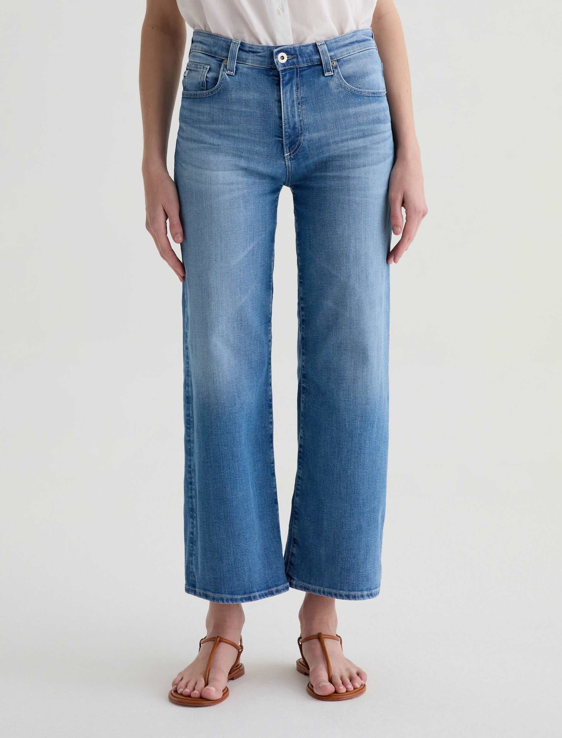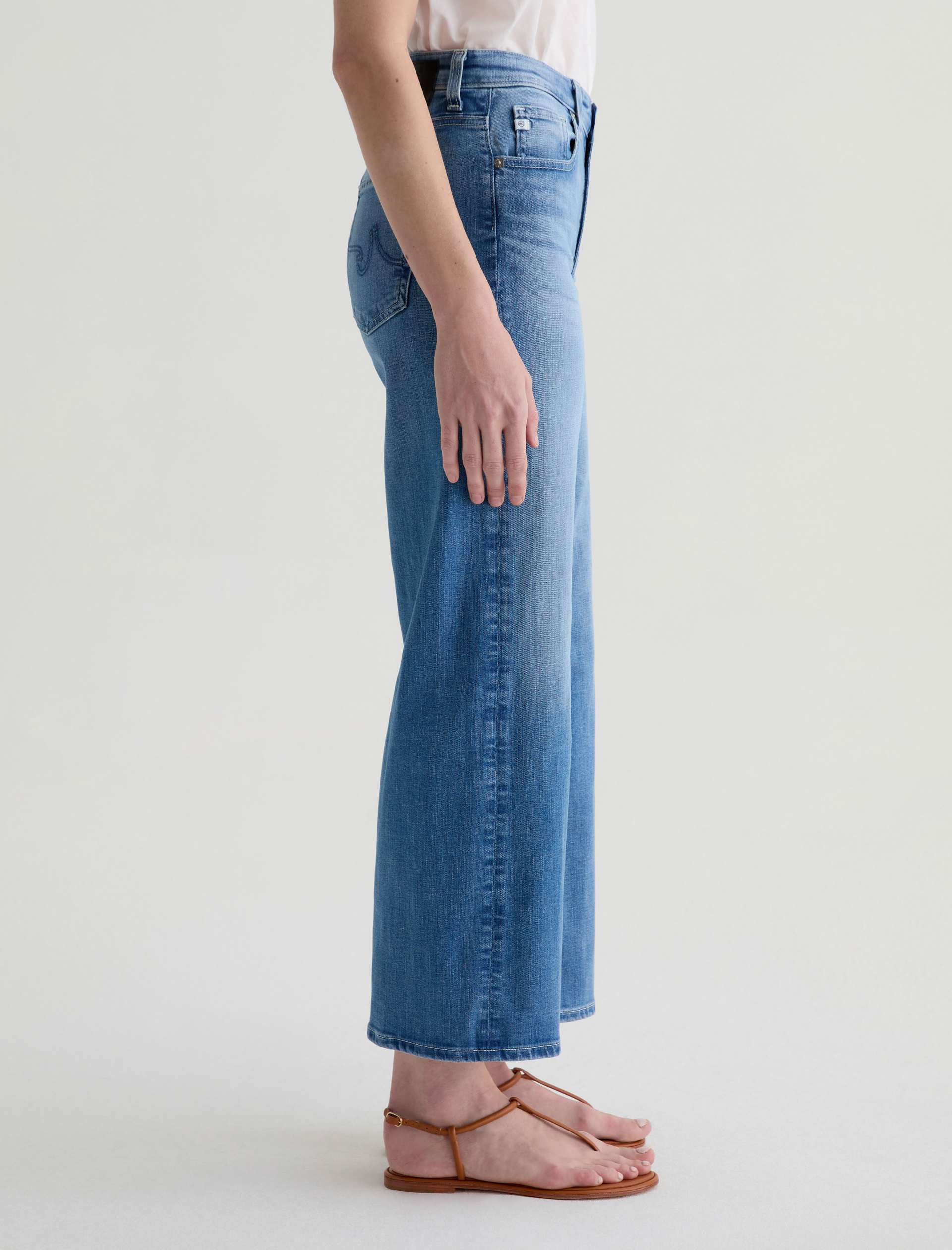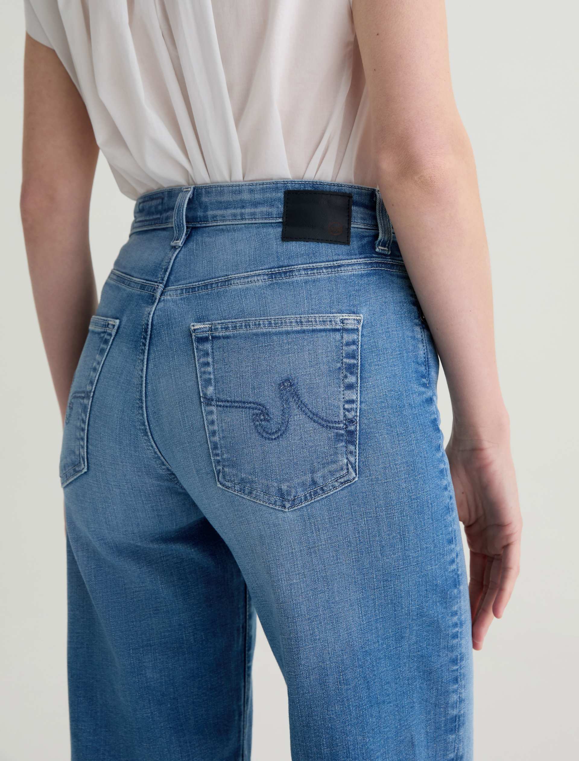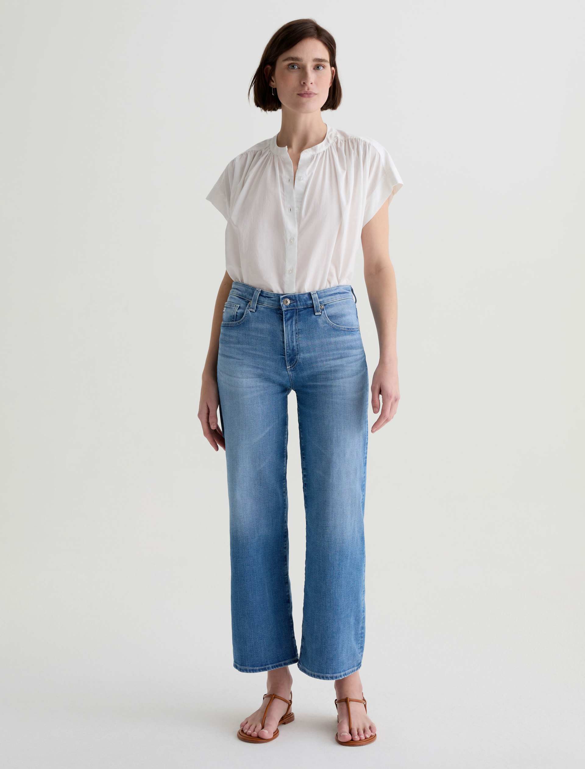 The Saige Wide-Leg Crop features a mid-rise fit with a 27” inseam that lands above the ankles. Made from 10.2 oz. Crosshatch Comfort Stretch Denim in a medium wash, it’s finished with clean hems and subtle whiskering for a soft, lived-in look.