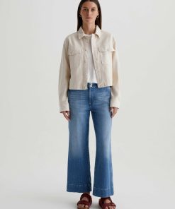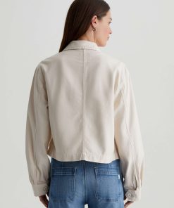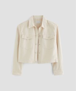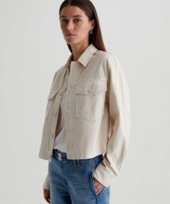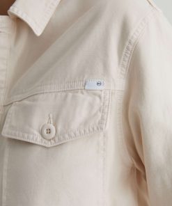 A cropped version of the classic utility shirt jacket, the Valleta layers with ease but also wears well on its own. This long-sleeve style comes in off-white Sternway Reverse Sateen and features button-through flap pockets at the front.